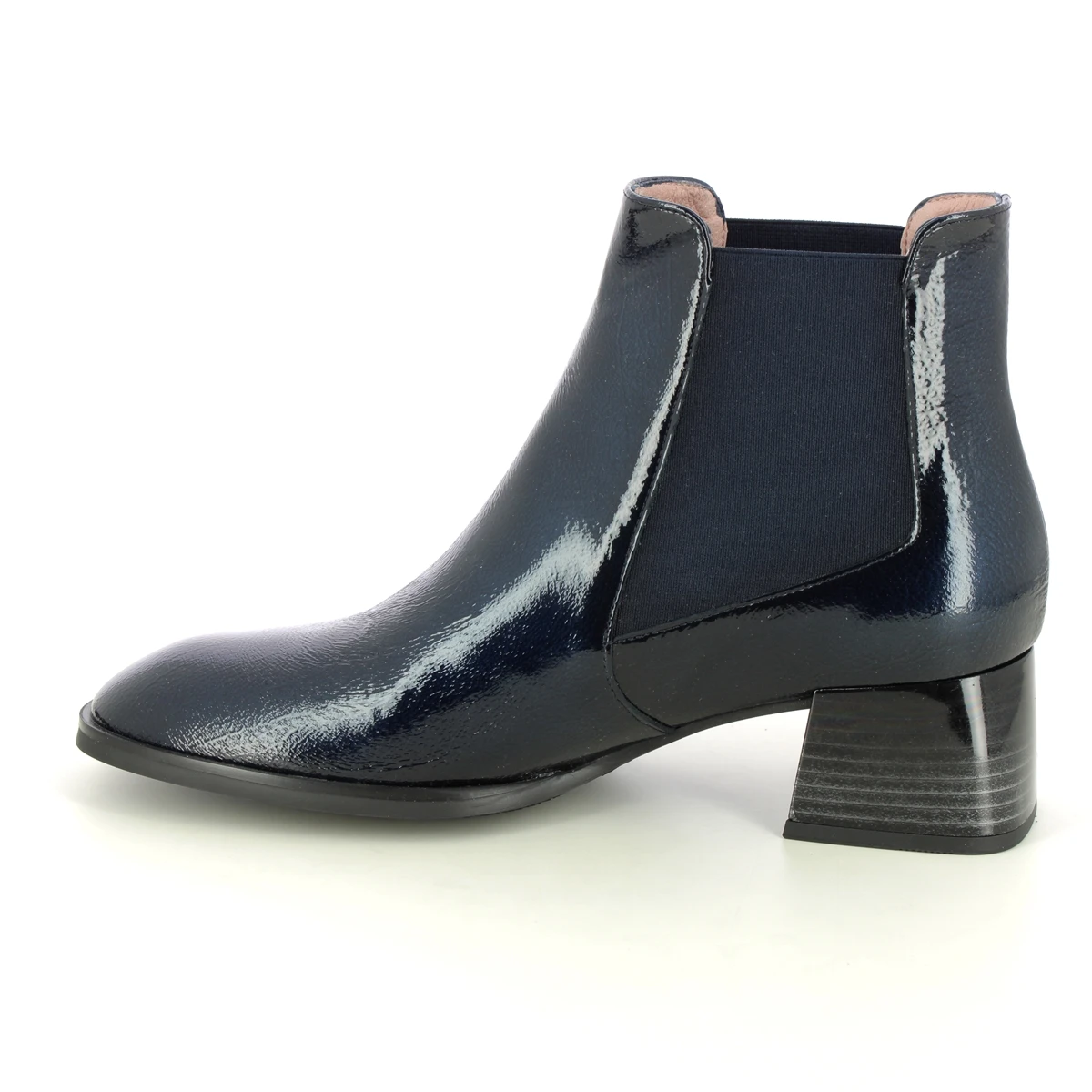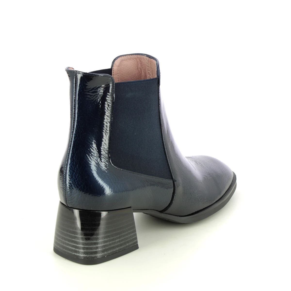 Hispanitas Charlize Chelsea women’s navy Chelsea boots are ideal for the colder season. These women’s navy ankle boots have a 4.5cm block heel with a shiny patent leather upper and elastic side panels for easy slip on fit.