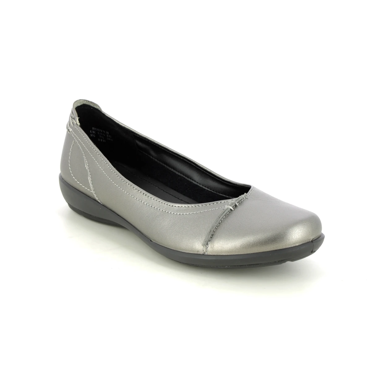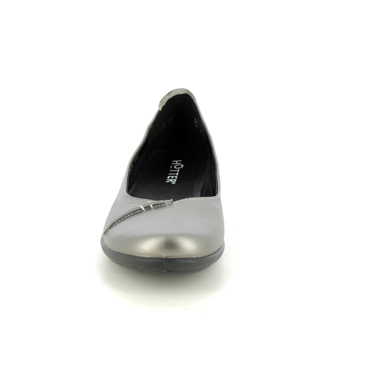The Hotter Robyn 2 women’s pewter pumps are comfortable and versatile. These leather pumps have accent stitching and a leather footbed for superb comfort, whilst the removable insole offers space for your own orthotics. Pair with smart black trousers and white blouse for an easy and comfy office outfit.
