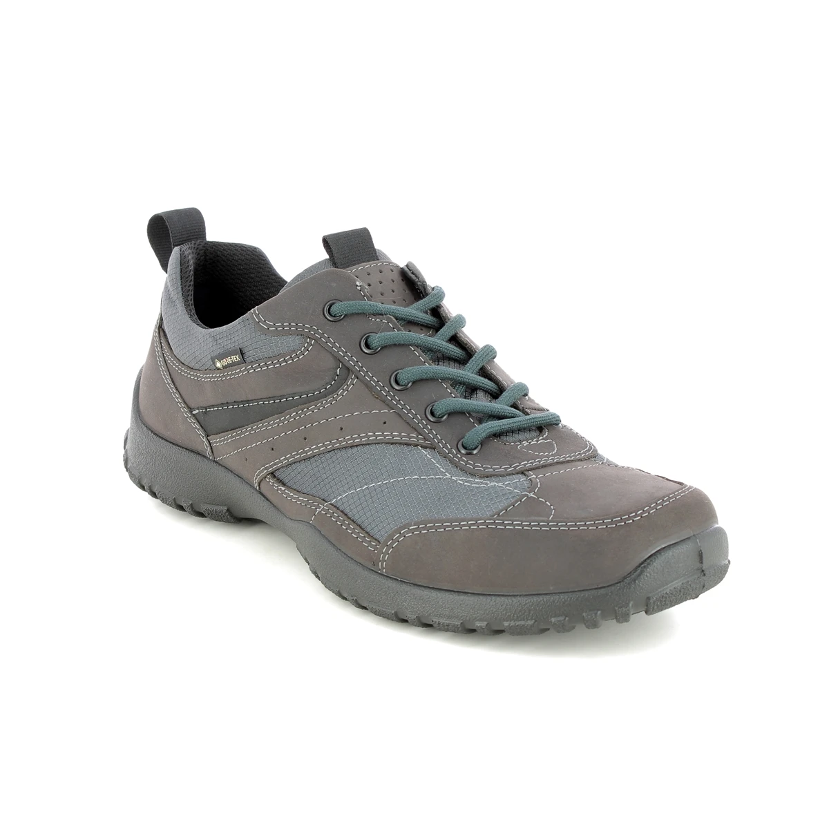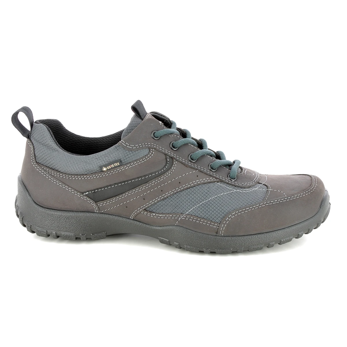 The Hotter Thunder Gtx mens charcoal grey walking shoes are waterproof and breathable thanks to the Gore Tex lining. A secure fastening can be achieved using the full lace up front along with comfy padding around the ankle.