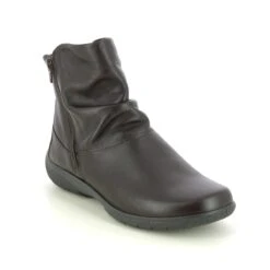 Hotter Whisper Wide women’s brown ankle boots offer superb comfort for those who prefer wider-fitting shoes. These women’s leather boots have a smooth upper in dark brown with a gentle ruching over the ankle. There are two side zips for easy foot entry and the removable insole offers space for your own orthotics if desired.