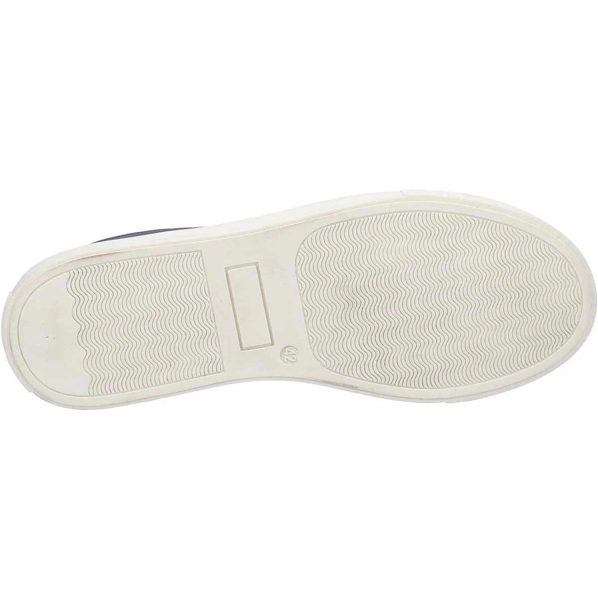 Hush Puppies Colton men’s navy trainers have a smooth leather upper with contrasting tan heel back and sporty white sole unit.