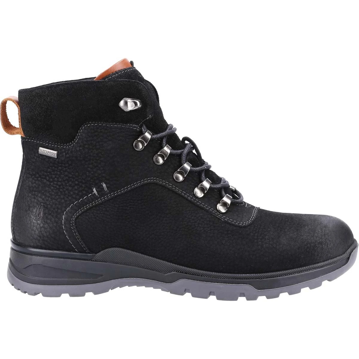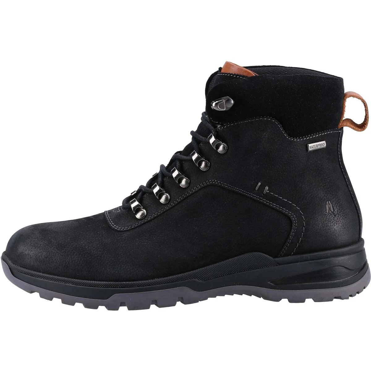Hush Puppies Paul men’s black lace up boots are ideal for outdoor adventures. These men’s waterproof boots have a velvety nubuck leather upper with lace up front and grooved outsole for improved traction.