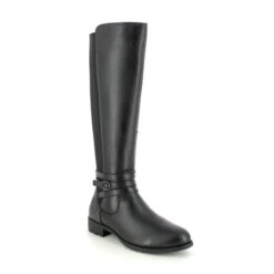 The Hush Puppies Vanessa Stretch women’s black knee high boots are contemporary and sophisticated. These black leather long boots have a stretchy calf panel for improved fit and a smooth leather upper. There is a skinny buckle and strap detail around the ankle whilst the full length zip provides an easy fastening.