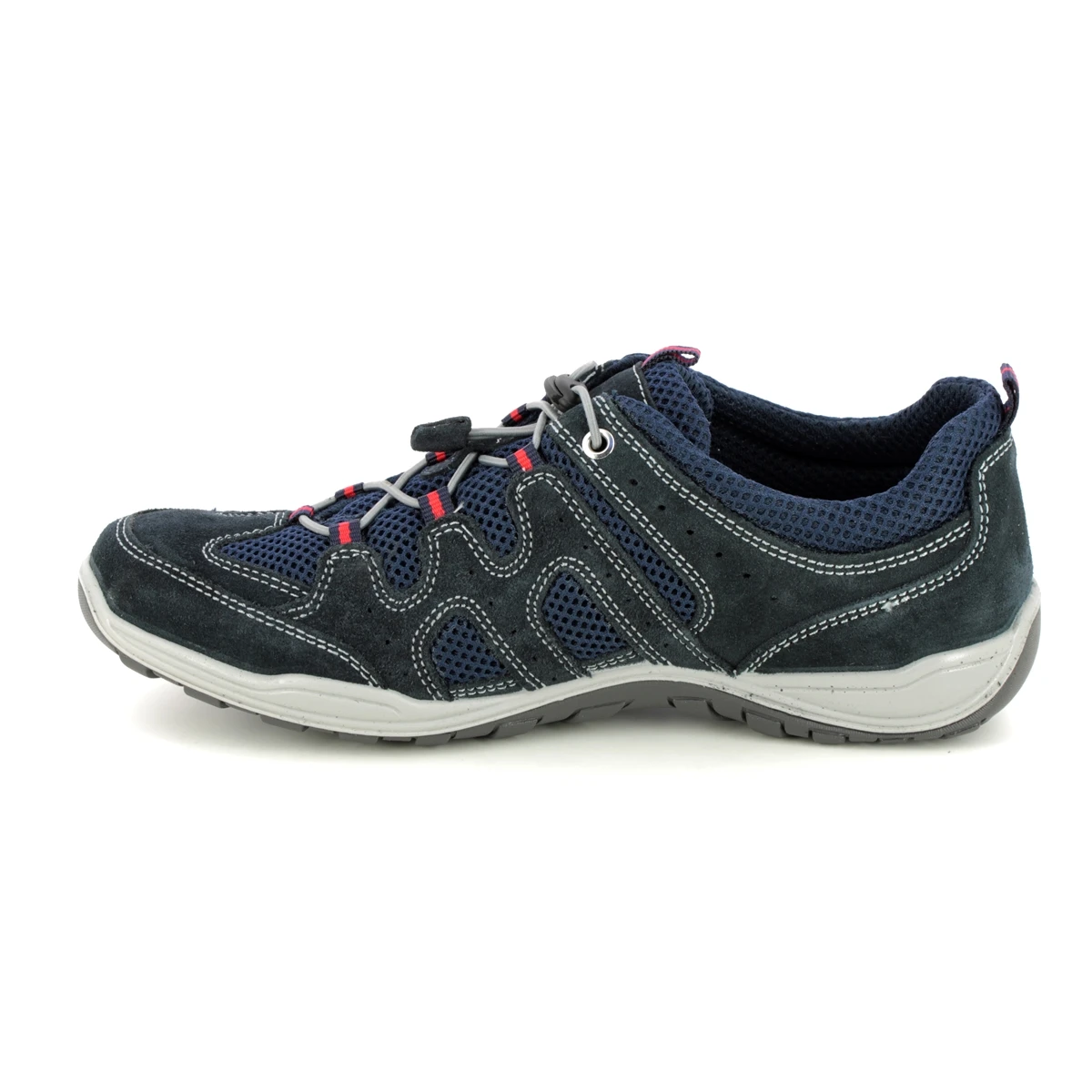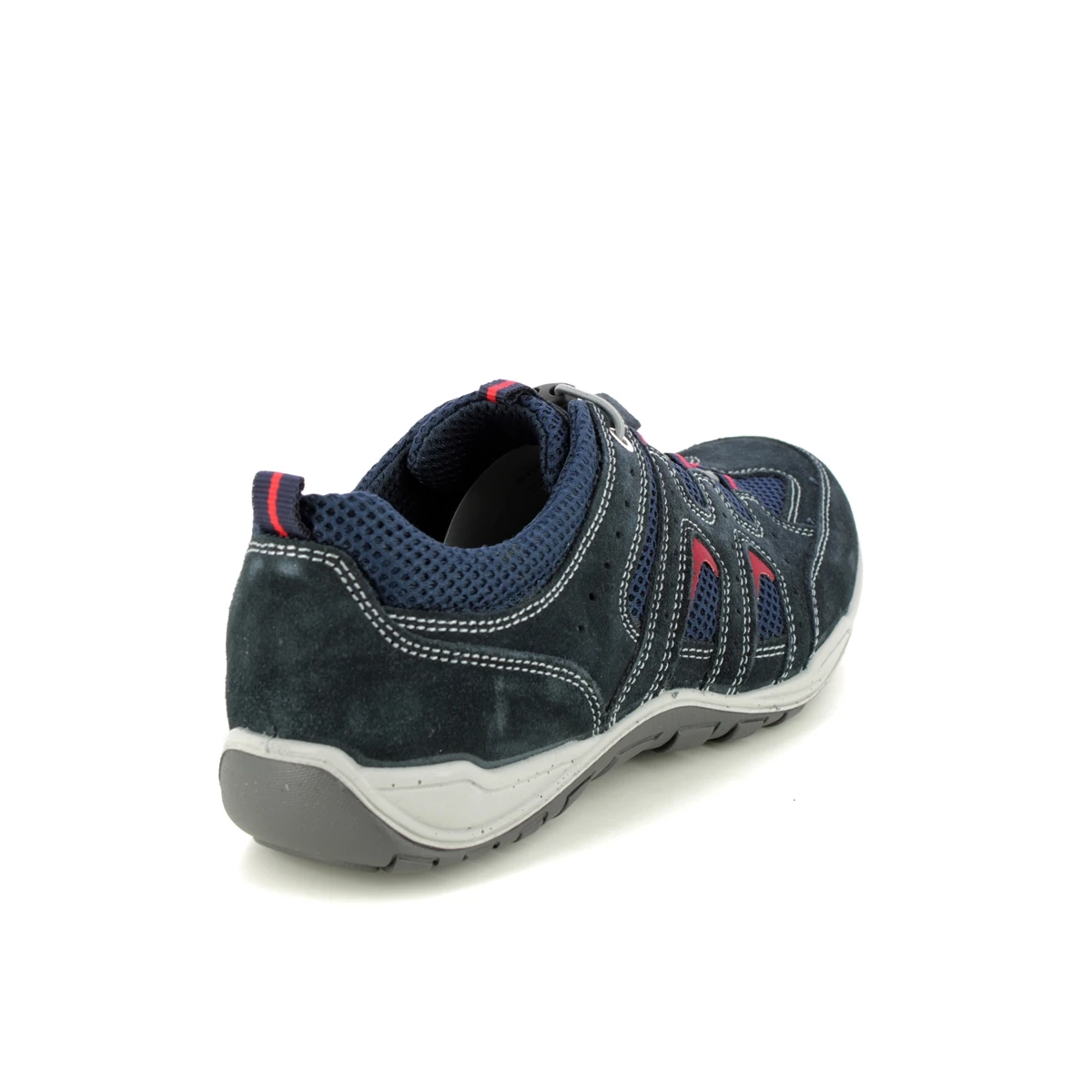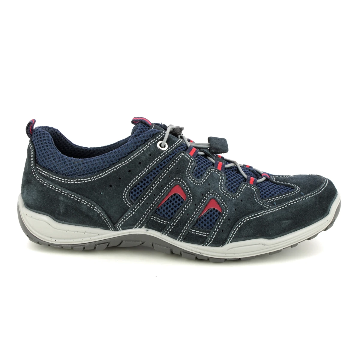 The Imac Check mens navy suede walking shoes have a grooved outsole for improved traction and the bungee lace fastening offers a quick and adjustable fit.
