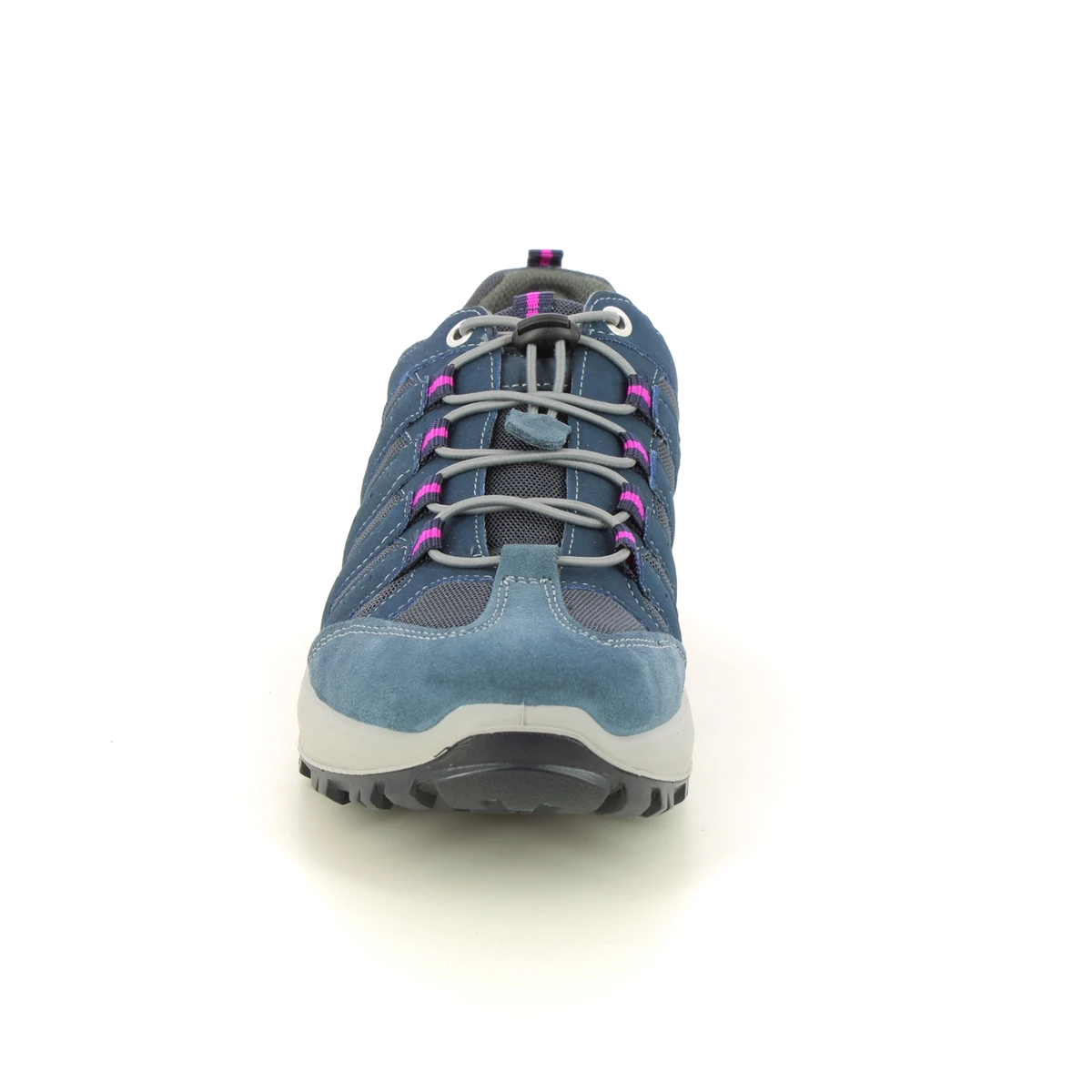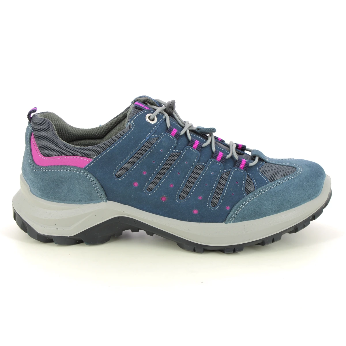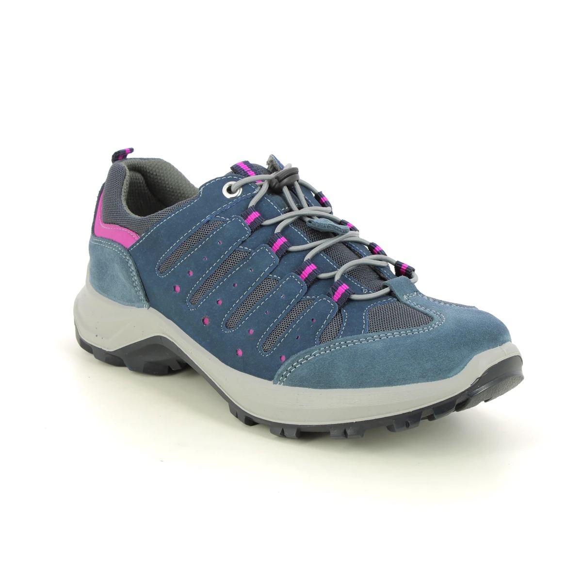 The Imac Geo Mesh Bungee women’s blue suede walking shoes are hard wearing and shock absorbent. Ideal for exploring the great outdoors, these women’s hiking shoes have a speed lace system consisting of a stretchy lace and adjustable toggle, making it easy to slip into these shoes and go. The padded lining and cushioned footbed offer superb comfort all around, and the removable insole offers additional room too. There is cleating on the outsole, offering improved traction on a variety of terrains.