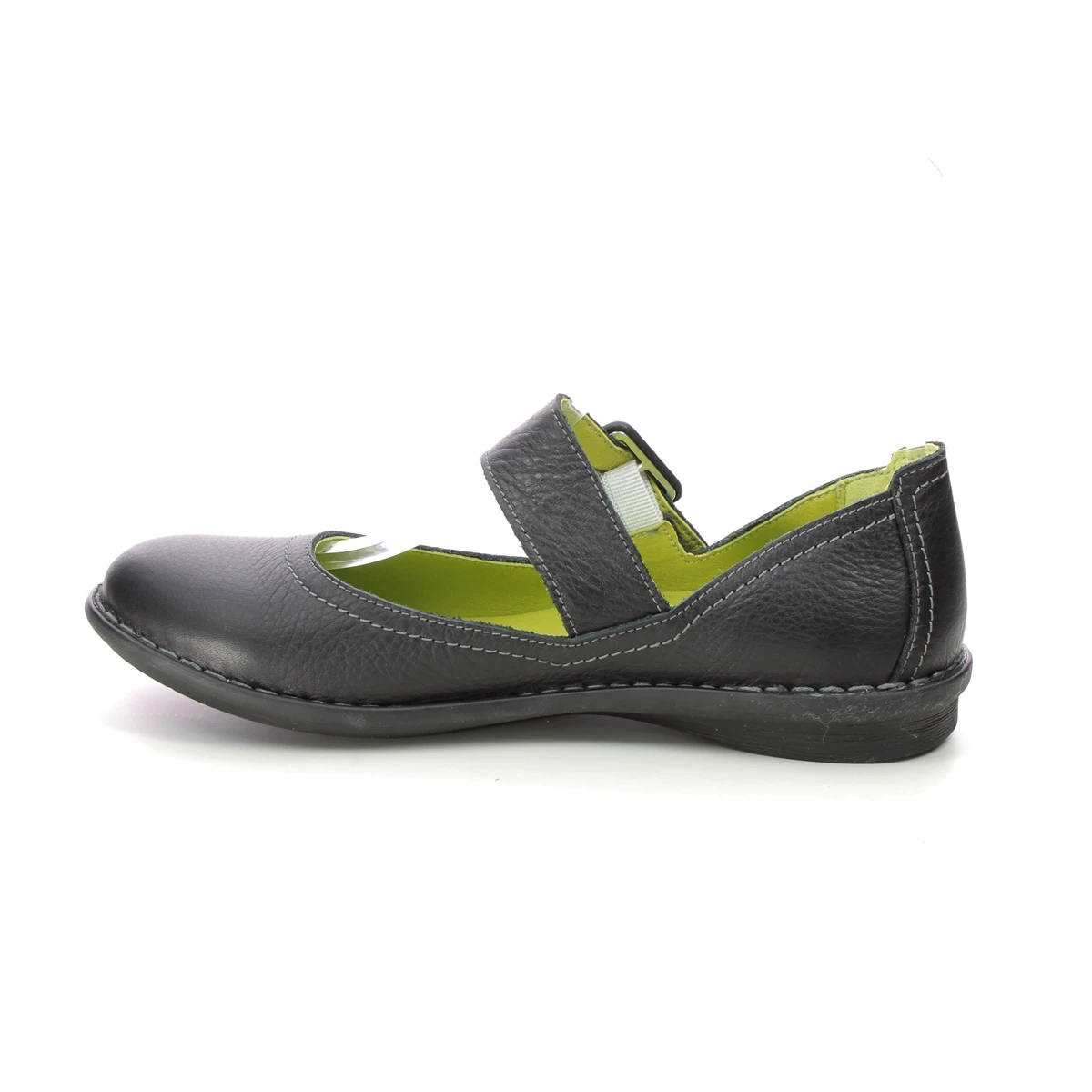 Junglas Chicabuck women’s black leather Mary Jane shoes are flexible and comfy. These women’s black Mary Jane shoes have a smooth leather upper with an adjustable buckle and strap over the vamp. The lime green leather lining and padded footbed will absorb excess moisture to keep feet cool in the warmer months.