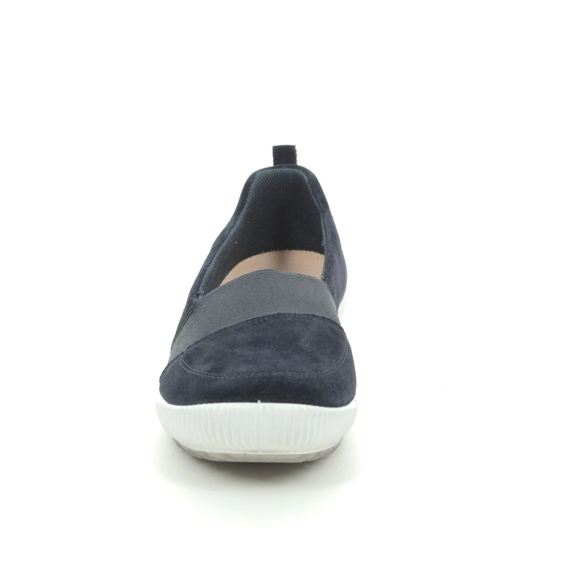 The Legero 2000887-8000 TANARO PUMP womens pumps are an update on the popular Legero Tanaro style. Seen here in navy suede leather these slip-on pumps are perfect for running errands. There is an elastic panel over the vamp for improved comfort and fit and the padded collar and heel offers superb support. There is a removable insole which features a cup sole heel and built-in arch support. The direct polyurethane sole unit is considered the best in sole construction as it is lightweight flexible and hard wearing. These Legero shoes also benefit from being shock-absorbent helping to keep your feet free from fatigue for longer.