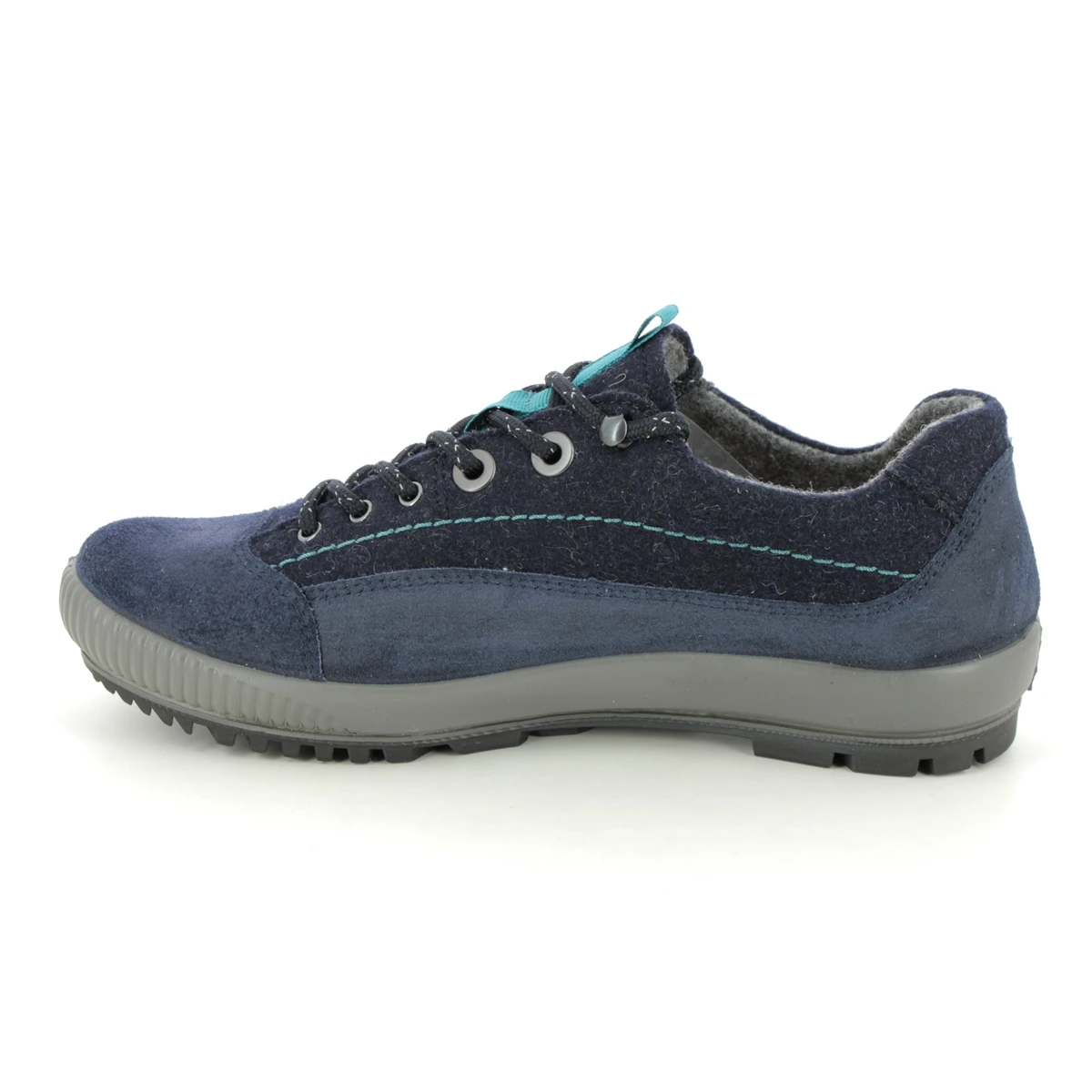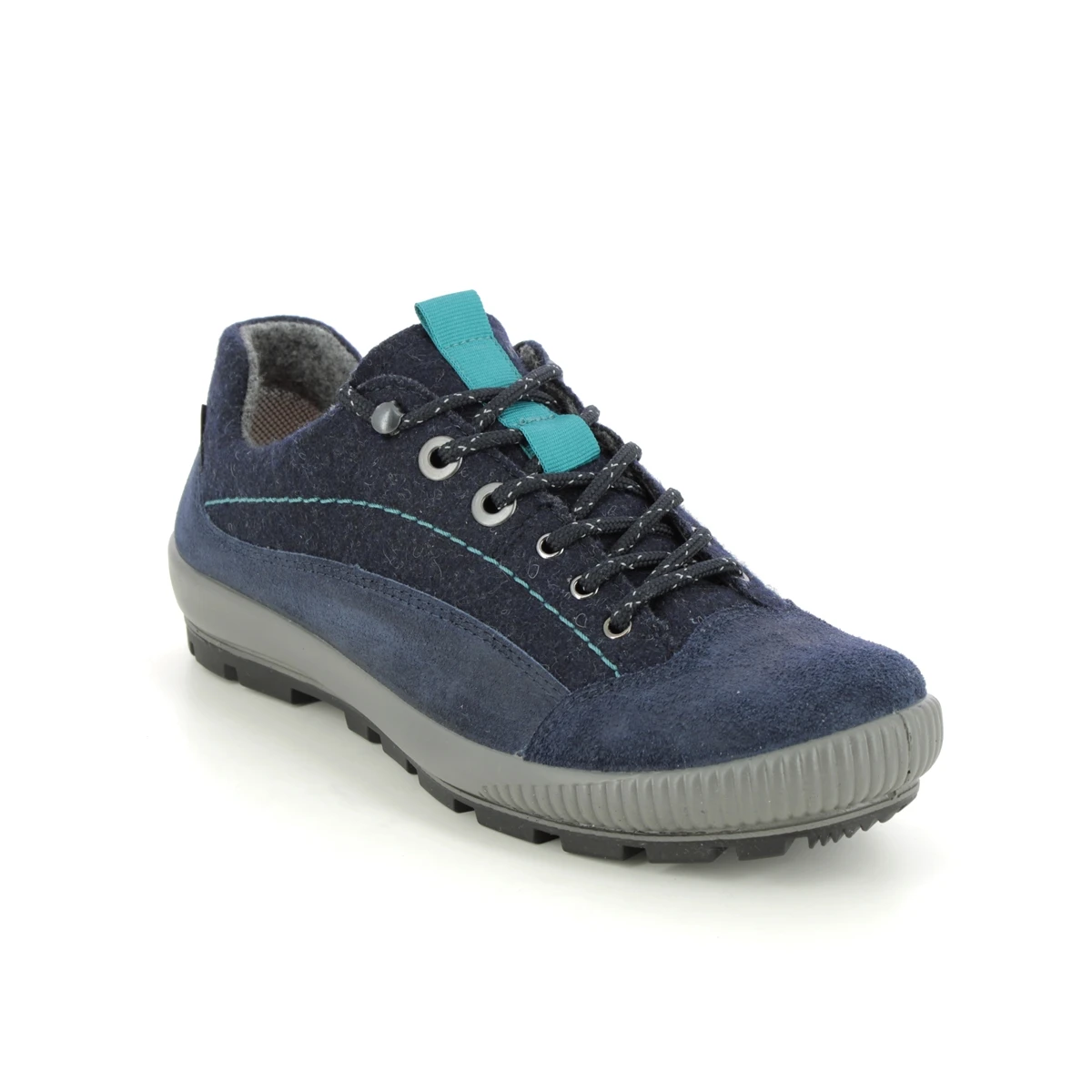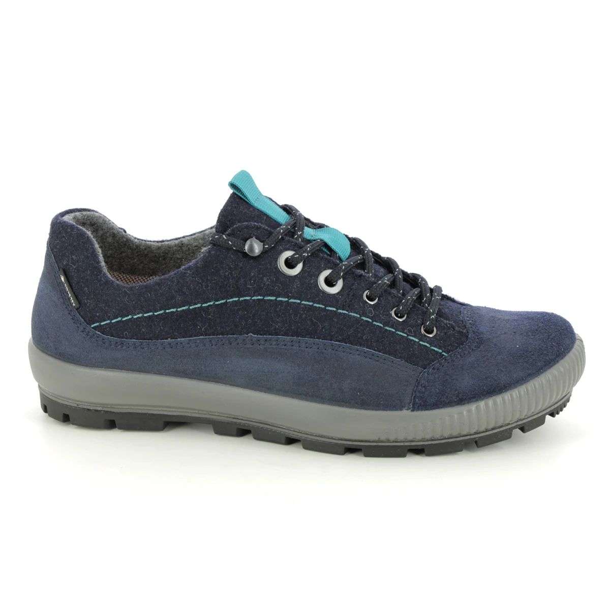 The Legero Tanaro Trek Gtx womens navy walking shoes are stylish and practical. These womens navy comfort lacing shoes have a suede leather upper with felt textile panels and a cosy fleece and textile lining. The navy gore-tex shoes are waterproof and breathable and the removable insole is anatomically shaped for enhanced comfort. The outsole is lightweight flexible and hard wearing.