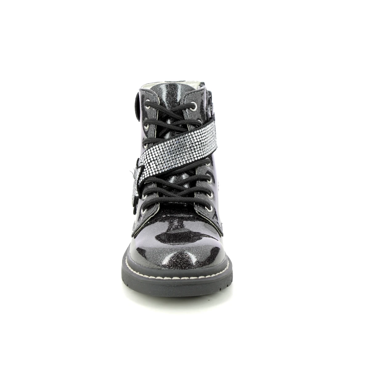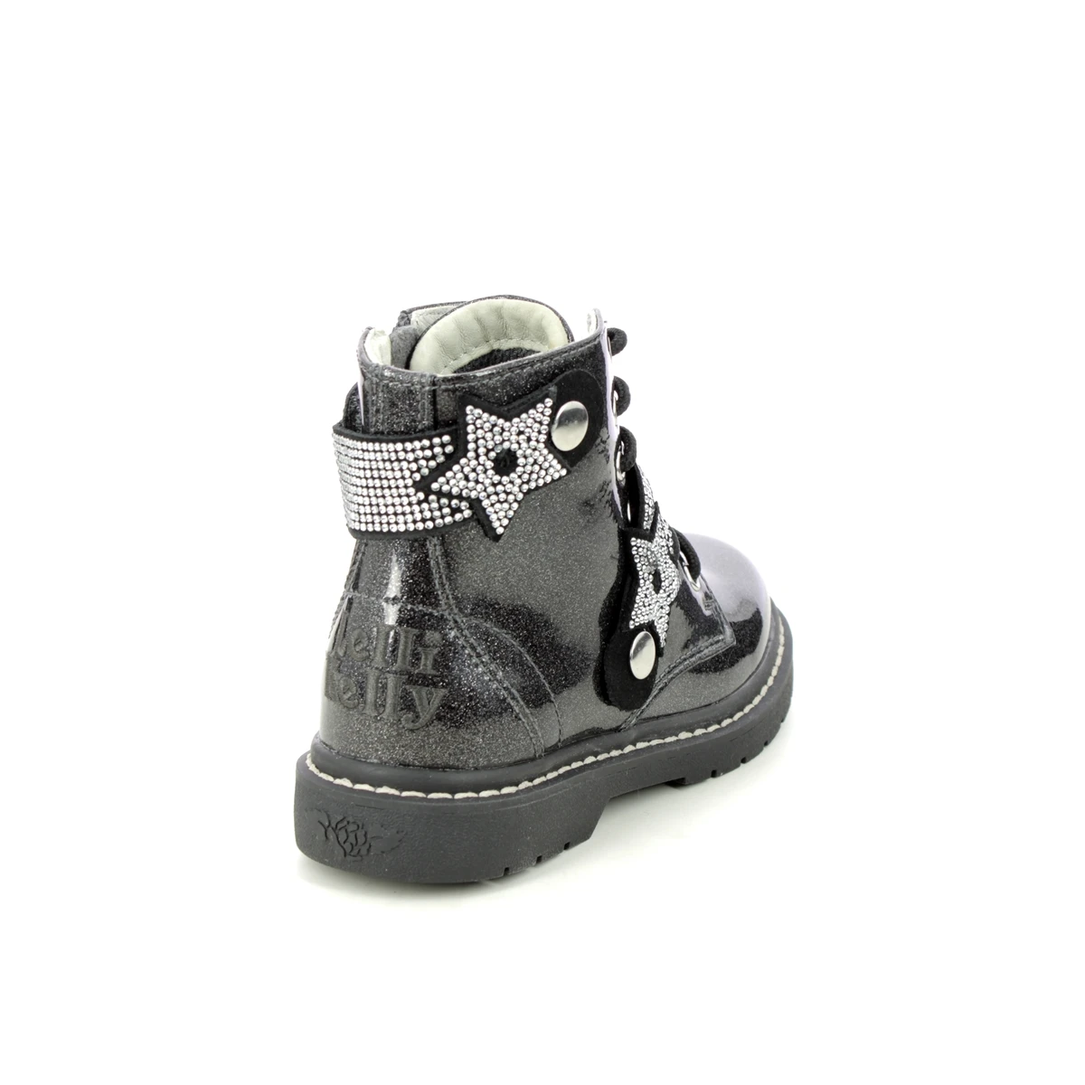The Lelli Kelly Stella Stellina girls black boots are stylish and sparkly. These girls lace up boots have a smooth leather upper with a sparkly studded star strap detail. The secure laces ensure an adjustable fastening whilst the side zip allows quick foot entry.