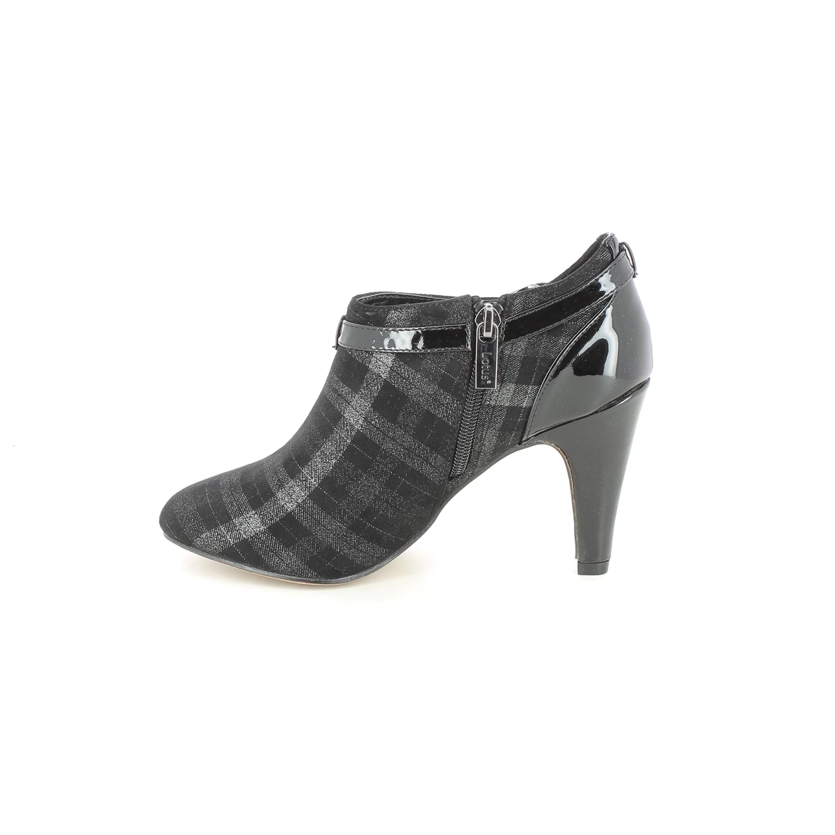 Lotus Alison Nola women’s black and silver shoe boots have a 90mm heel and interior side zip for easy foot entry.