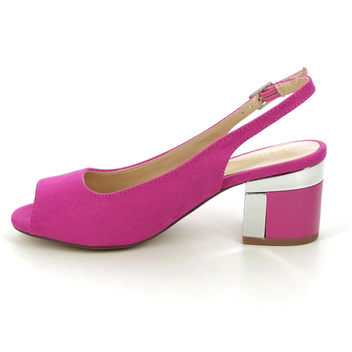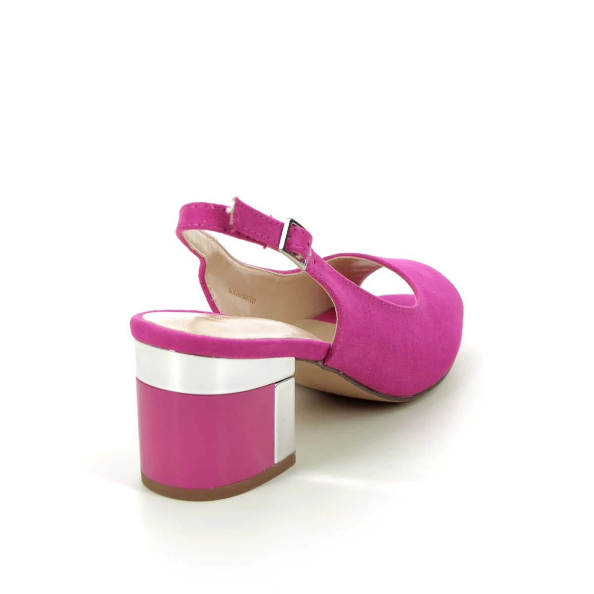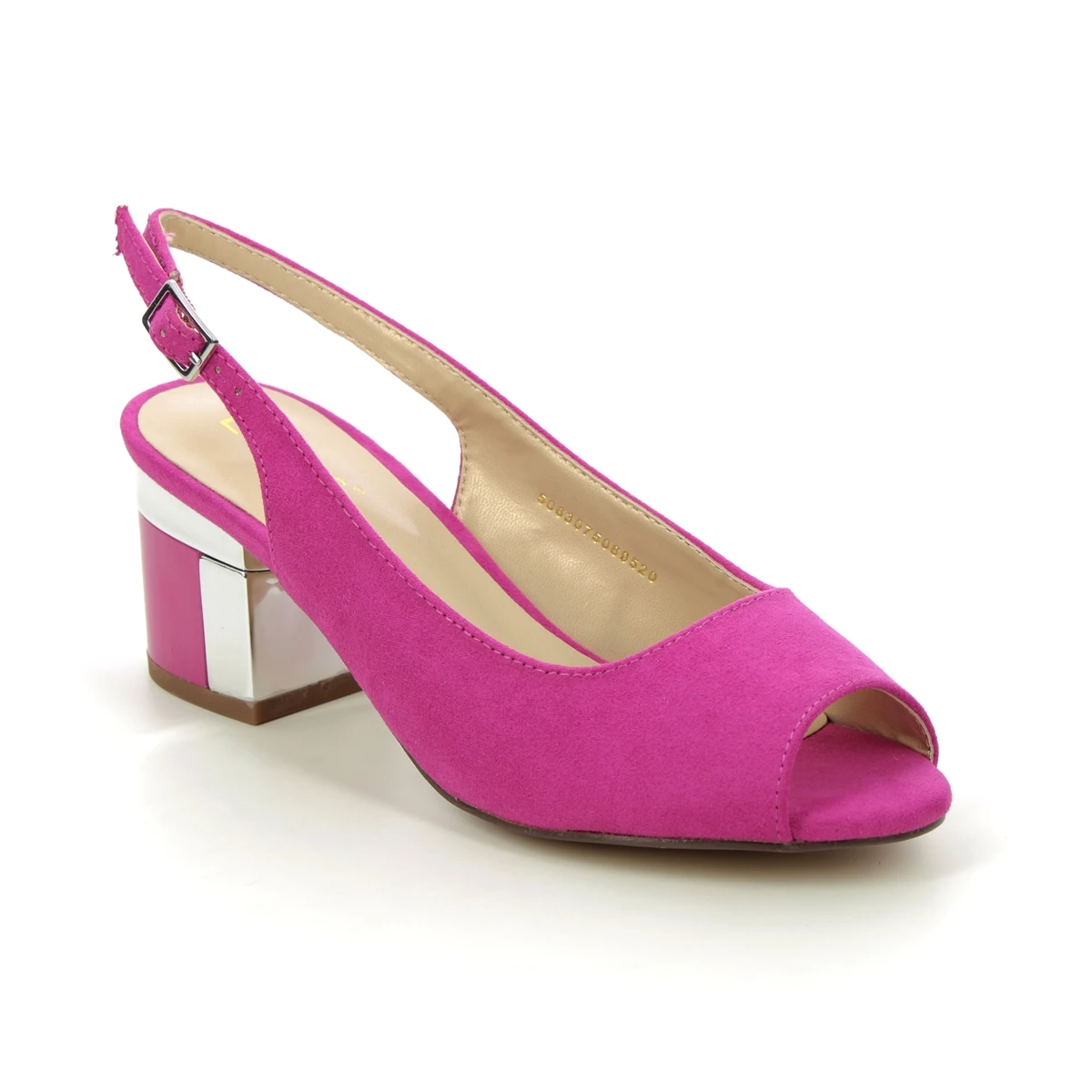 The Lotus Evelyn Peep Toe women’s fuchsia heels are a stunning pop of colour. These women’s pink slingback heels have a soft textile upper in bright pink with an adjustable slingback strap and flattering peep toe. The shiny block heel has a mirrored surface with a heel height of 65mm, making them very wearable indeed. Pair with the Lotus Claire Evelyn fuchsia clutch bag to complete your look.