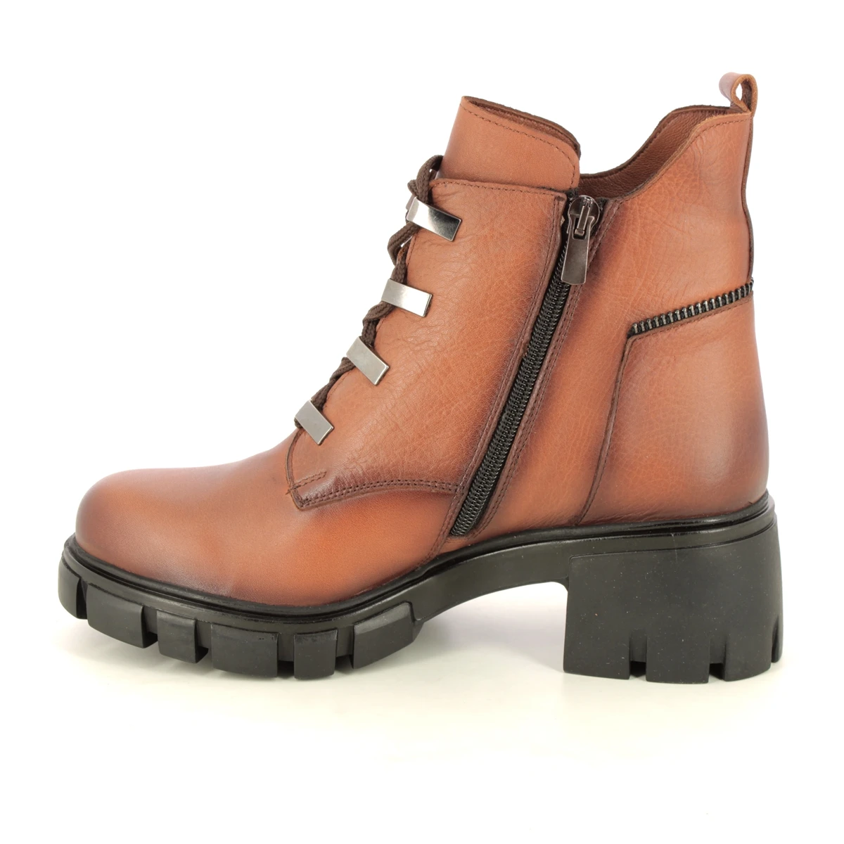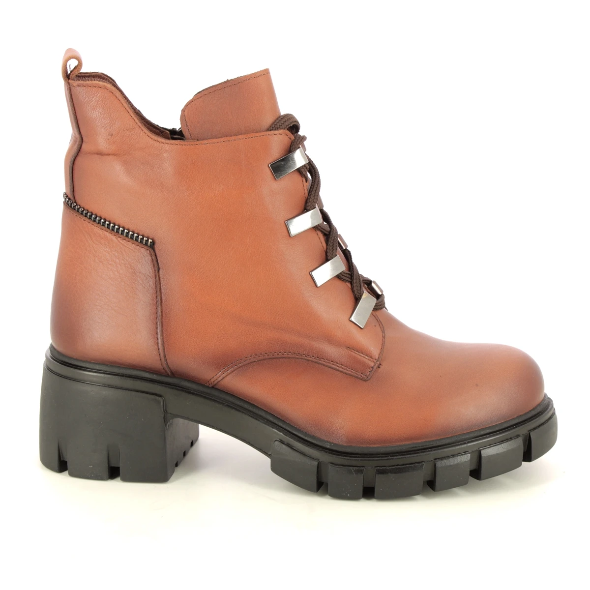 The Lotus Lacie Lace women’s tan leather lace up boots are bang on trend. These women’s tan ankle boots have a smooth leather upper with dramatic chunky cleated outsole measures 55mm at the heel. The lace up front offers a secure fastening and is adorned with contemporary metallic hardware.