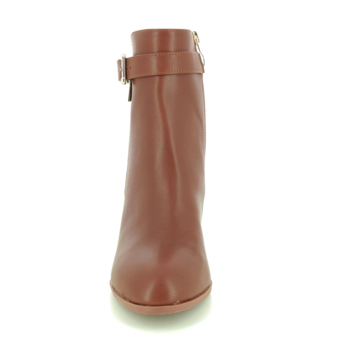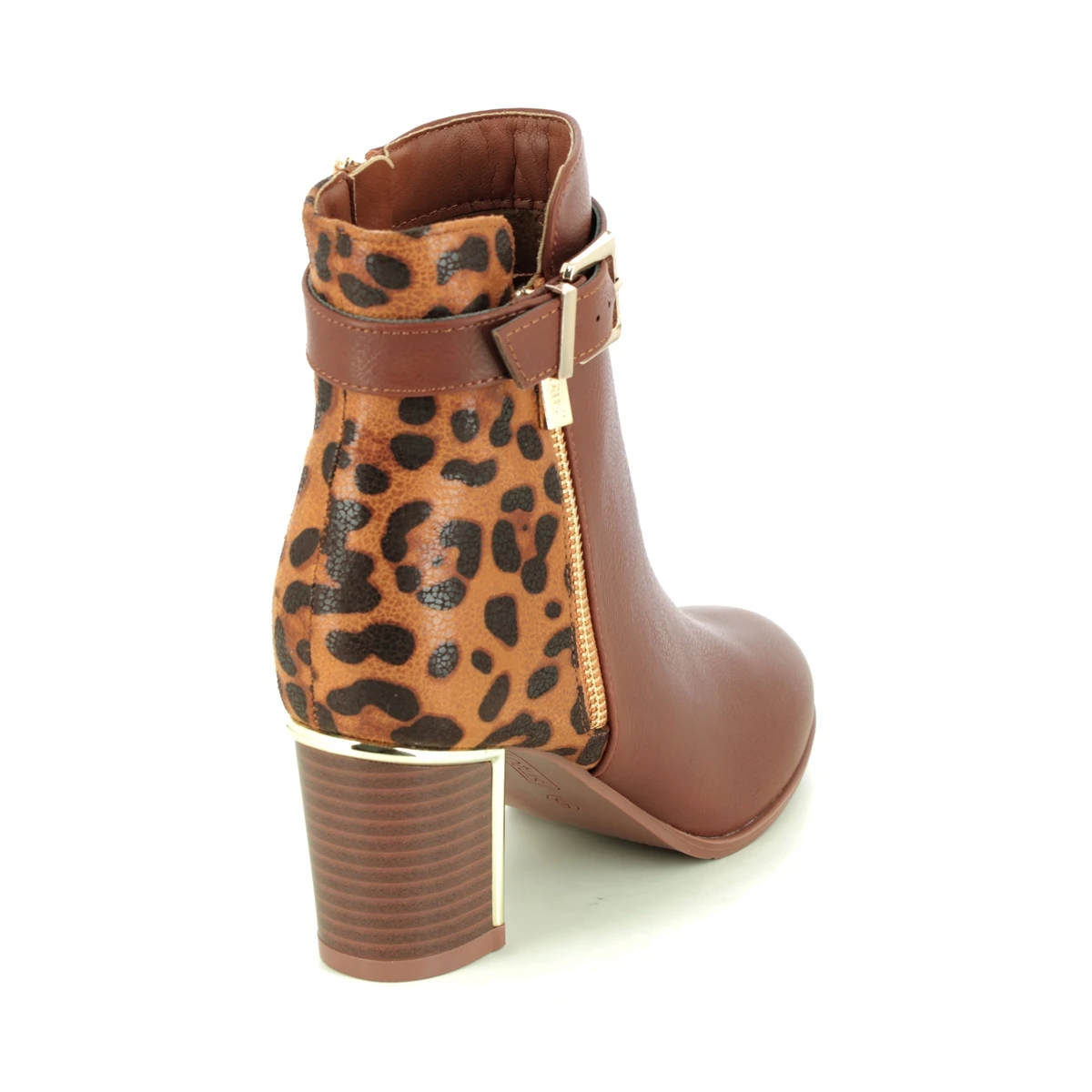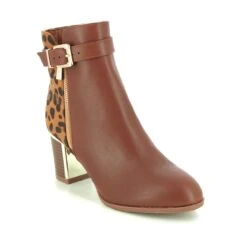 The Lotus Monica womens tan heeled boots are a fashionable style for the autumn season. These womens tan ankle boots have a smooth leather effect upper with contemporary leopard print panel at the heel. The stacked heel measures 65mm and features a metallic mirror trim.