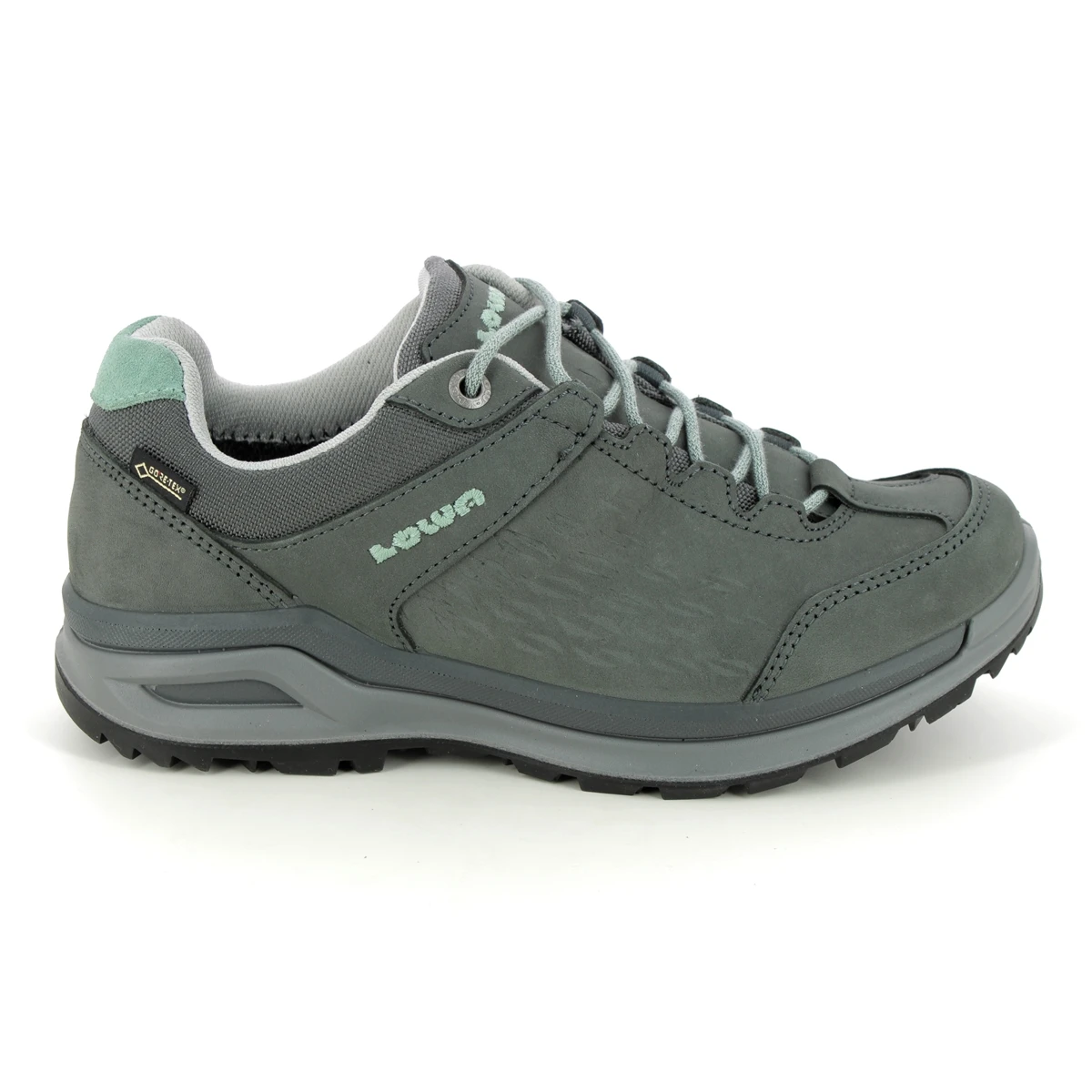 The Lowa Locarno GTX Wide women’s grey walking shoes offer exceptional comfort and support. These women’s waterproof walking shoes have a grey nubuck leather upper with overlay panels and a Gore Tex membrane. The wide fit design is ideal for those who require wider fitting shoes, and allows for space for your own orthotics if required. Best for hiking, the grooved sole unit offers traction on a variety of terrains.