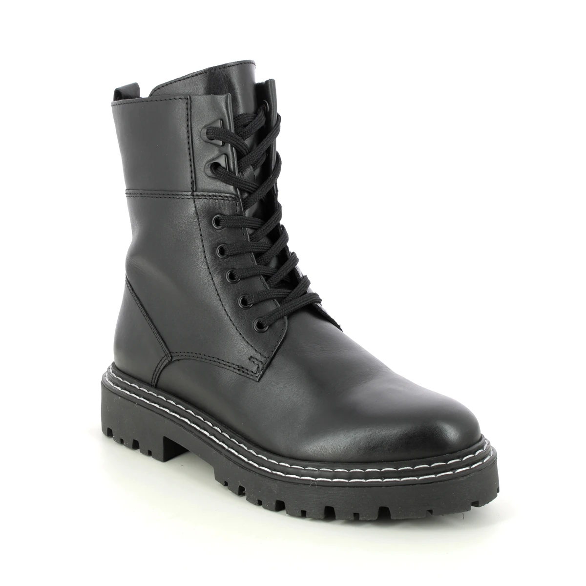Marco Tozzi Sensio Lace women’s black biker boots are bang on trend and versatile. These women’s black lace up boots have a smooth leather upper with interior side zip and full laces, whilst the chunky cleated sole keeps the style contemporary.
