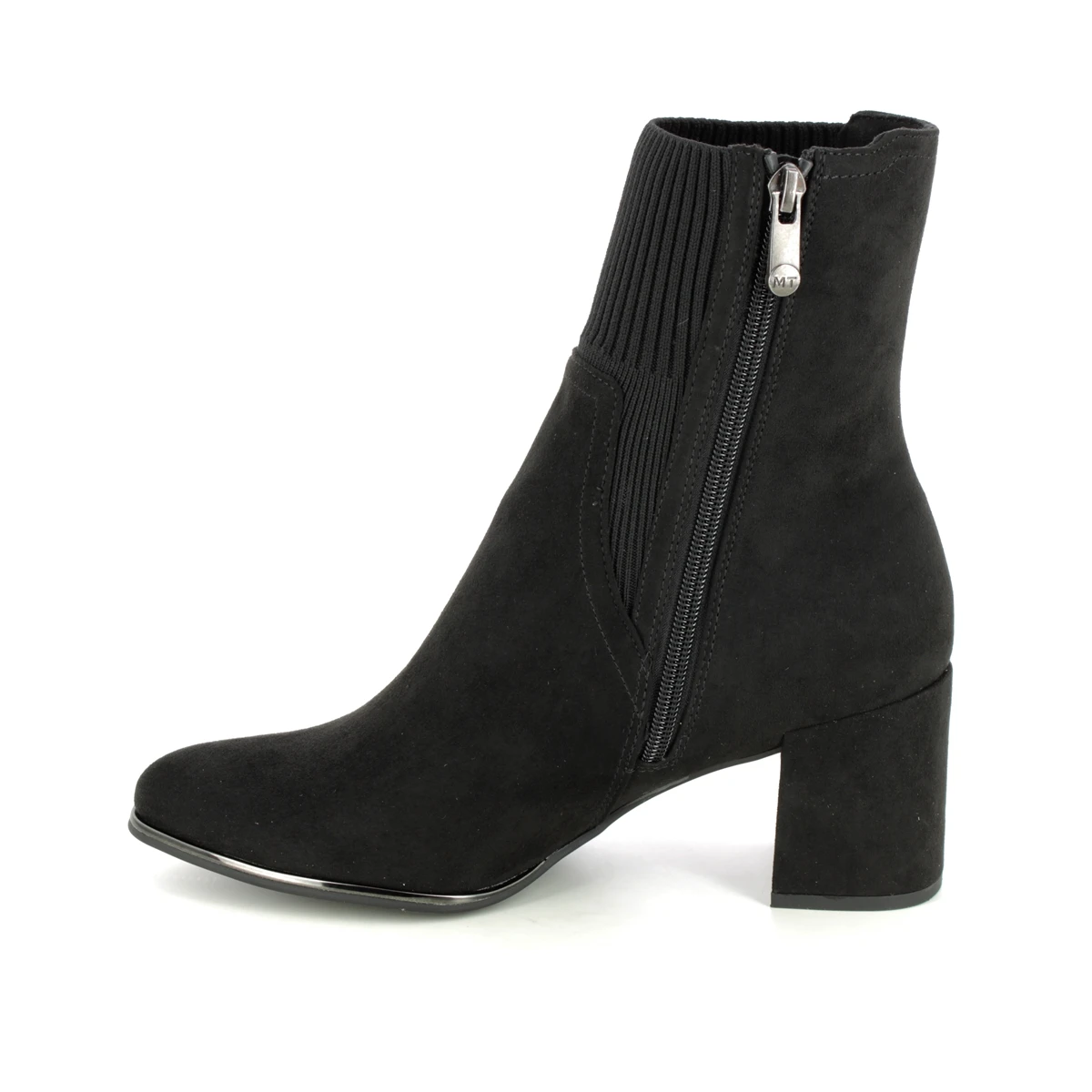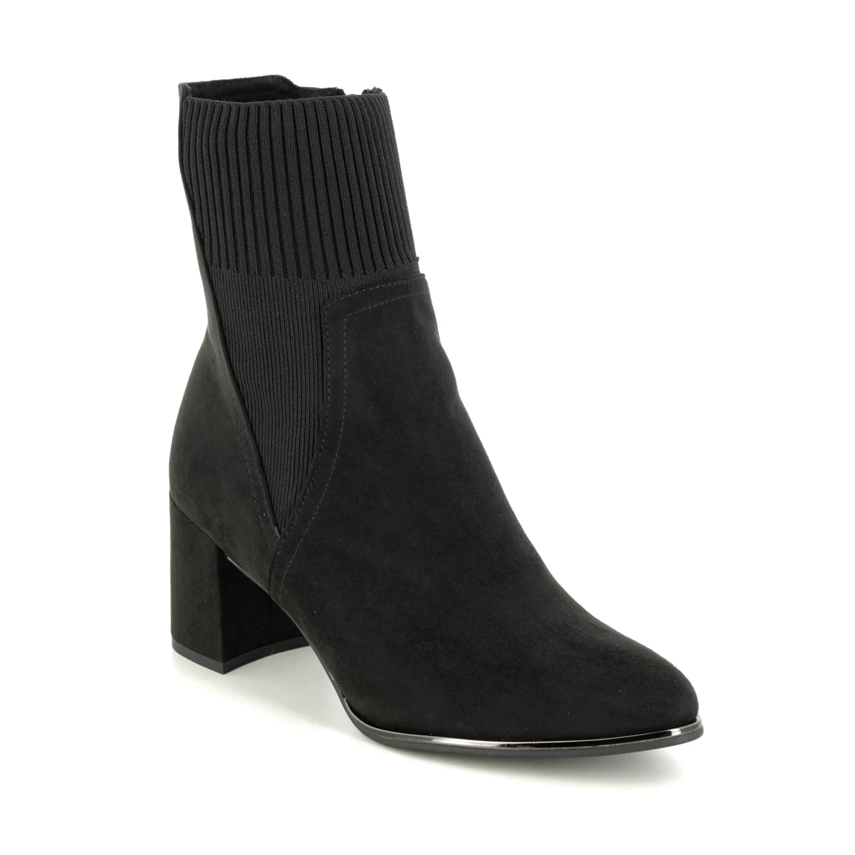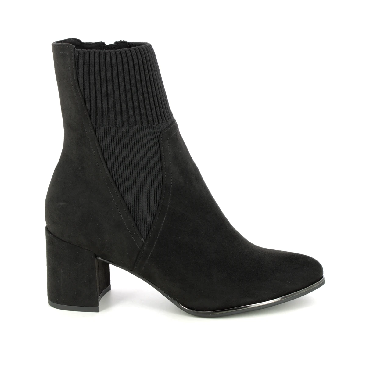 Marco Tozzi Delosock 25 women’s black heeled boots are super stylish. These women’s black heeled boots have a soft textile upper with stretch cuff for a slim fit around your ankles. The covered block heel measures 70mm for notable height. Pair with black leather look trousers and floaty top for an easy going-out outfit.