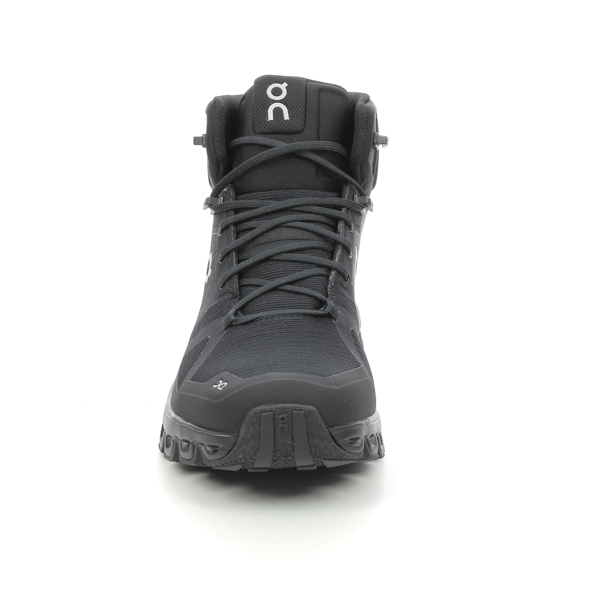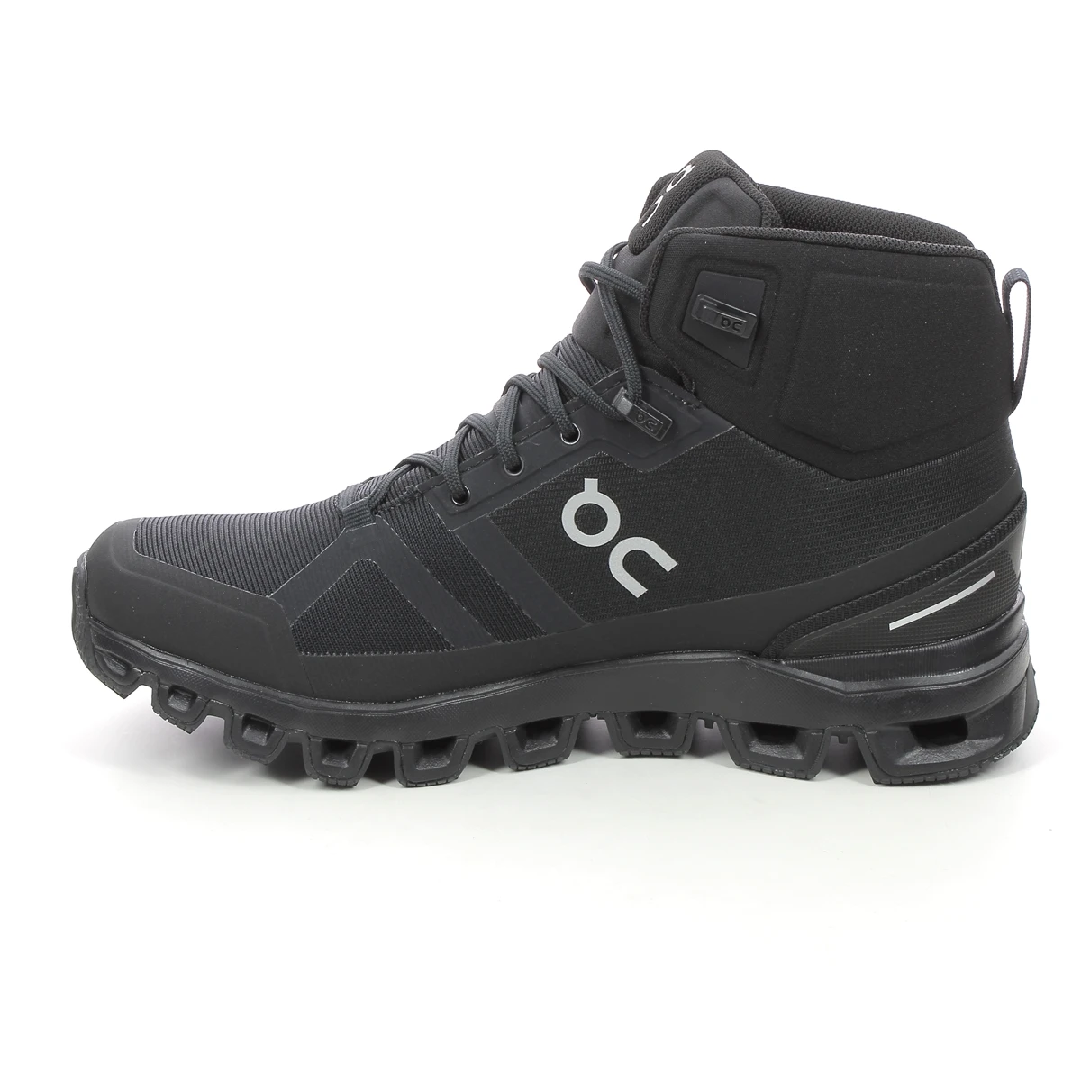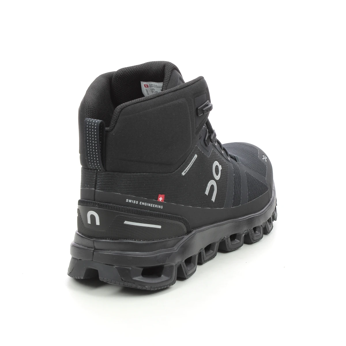 ON Running bring you CLOUDROCK WATERPROOF womens walking boots in stealthy black. By using ON Runnings innovative Cloudtech technology and breathable mesh fabric uppers they have created their first womens waterproof walking boot which is up to 35% lighter in weight than other counterparts. The Cloudrock Waterproof womens hiking boots boast the Cloudtech rebound technology to propel you through each step as well as a rubber Missiongrip outer layer to provide additional grip and traction. As well as being a high performance walking boot the womens Cloudrock Waterproof black hi-top sneakers would look great paired with leggings or skinny jeans for an athletic sporty style. Begg Shoes recommends taking a half to a full size larger than your normal UK shoe size for this particular style which we find comes up smaller than expected.