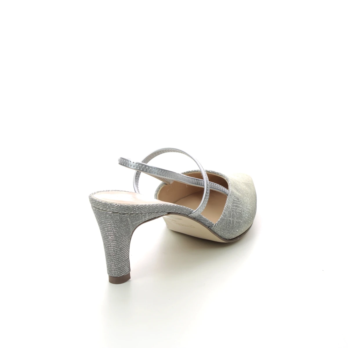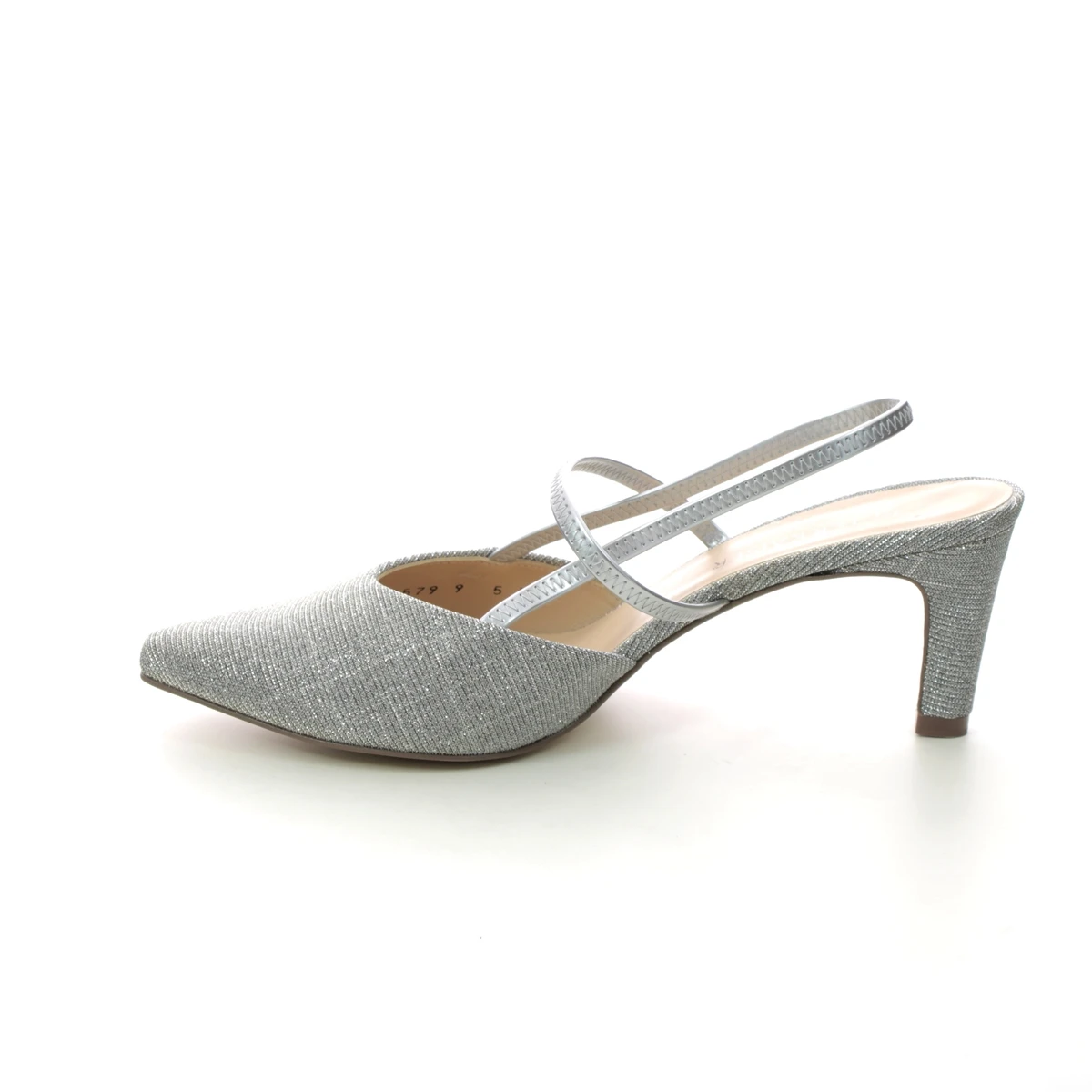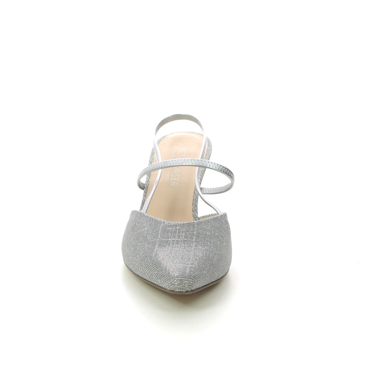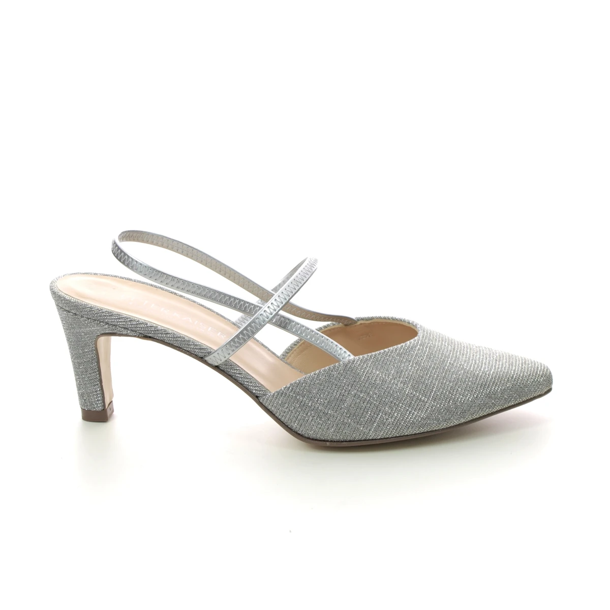Peter Kaiser Mitty A womens silver slingback shoes are the perfect combination of comfort and style. These womens low heels have a shimmering silver textile upper with chrome-free leather lining for excellent comfort. The low 60mm heel offers a little extra height without compromising on comfort whilst the slingback strap ensures an easy slip on fastening. The Peter Kaiser Hesa silver bag makes a perfect companion to your special occasion.