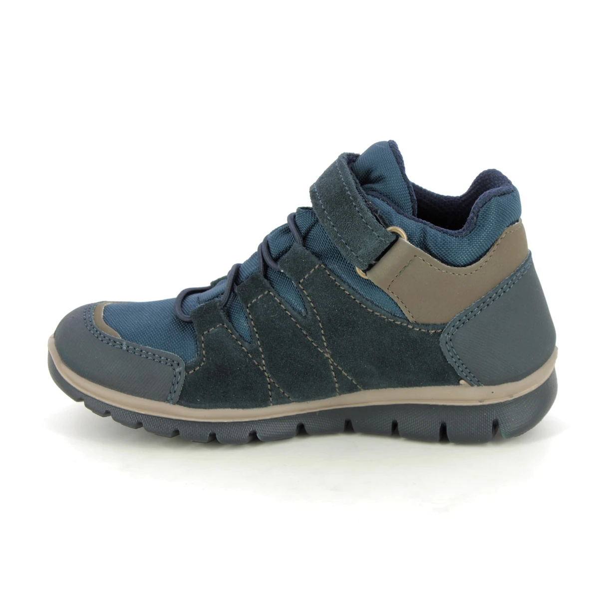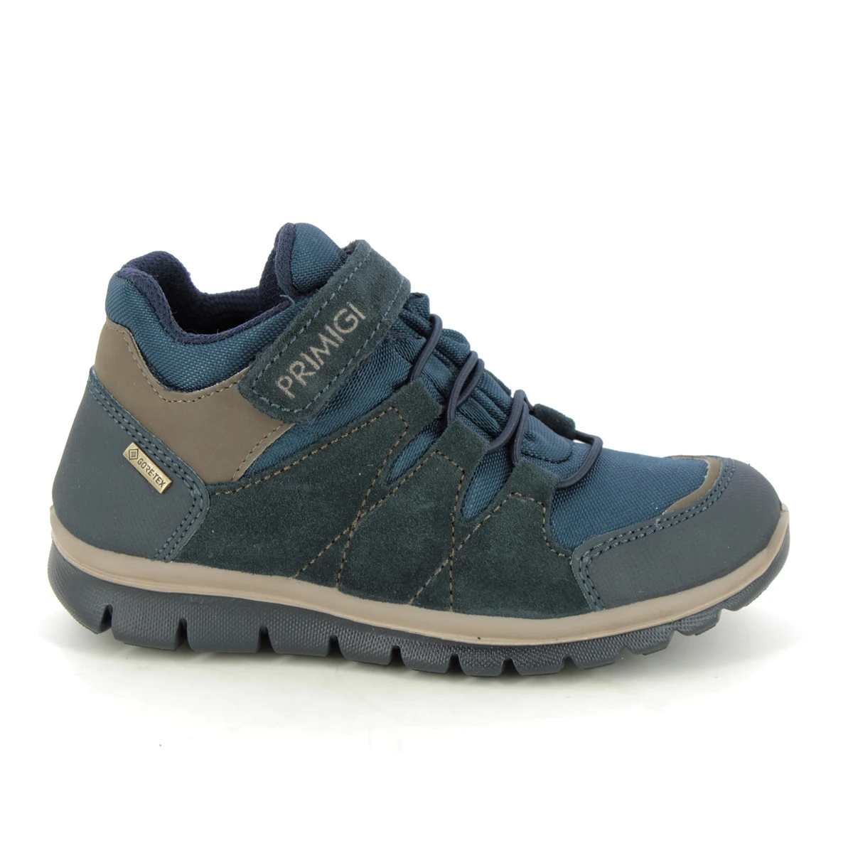 The Primigi Hilos Gtx Bungee boys navy boots are waterproof and outdoorsy. These boys navy hi top trainers have a bungee lace fastening and Velcro strap making them easy for boys on the go. The padded collar and Gore-tex membrane ensures feet are kept snug and dry.