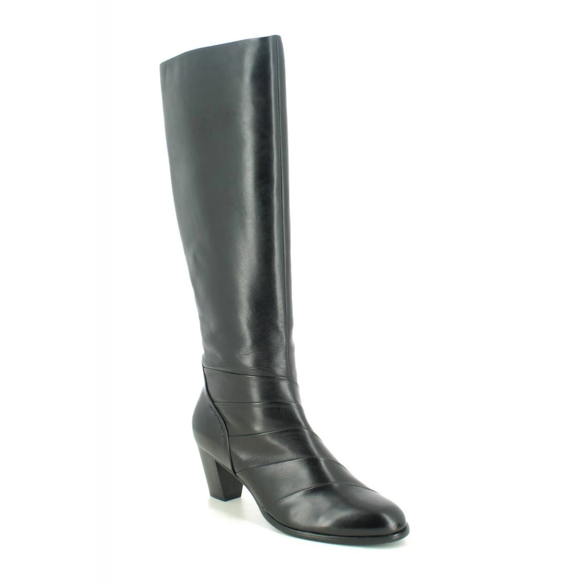 Regarde le Ciel 2075-003 SONIA 03 black knee high boots are sleek and stylish. These heeled long boots have a smooth black leather upper with overlay panels on the vamp for improved structure and flattering effect. The interior side zip offers easy foot entry and a secure fastening whilst soft lining will feel snug against your legs and feet. The padded footbed offers comfort with every step whilst the 55mm heel offers extra height without compromising on comfort. Perfectly versatile for workwear casual wear or evening drinks these womens knee high boots are a wardrobe staple.