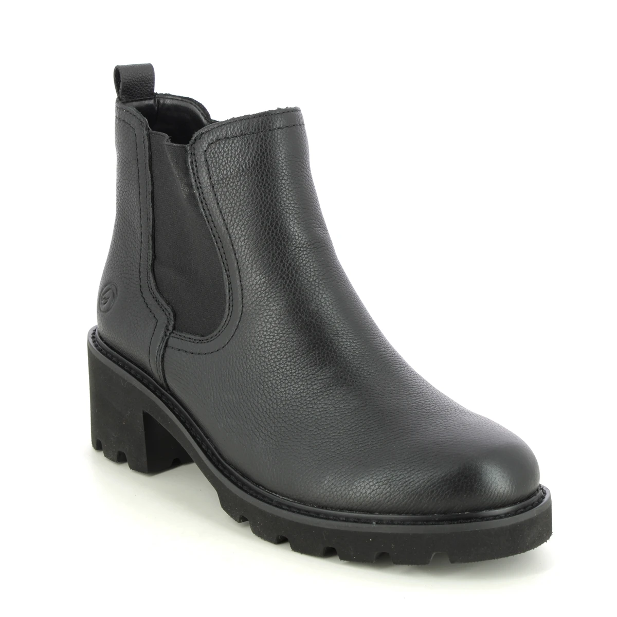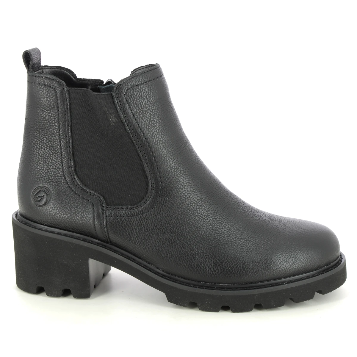 The Remonte Bodochel women’s black Chelsea boots are a wardrobe staple. These heeled Chelsea boots have a smooth leather upper with chunky cleated sole and block heel measuring 55mm.
