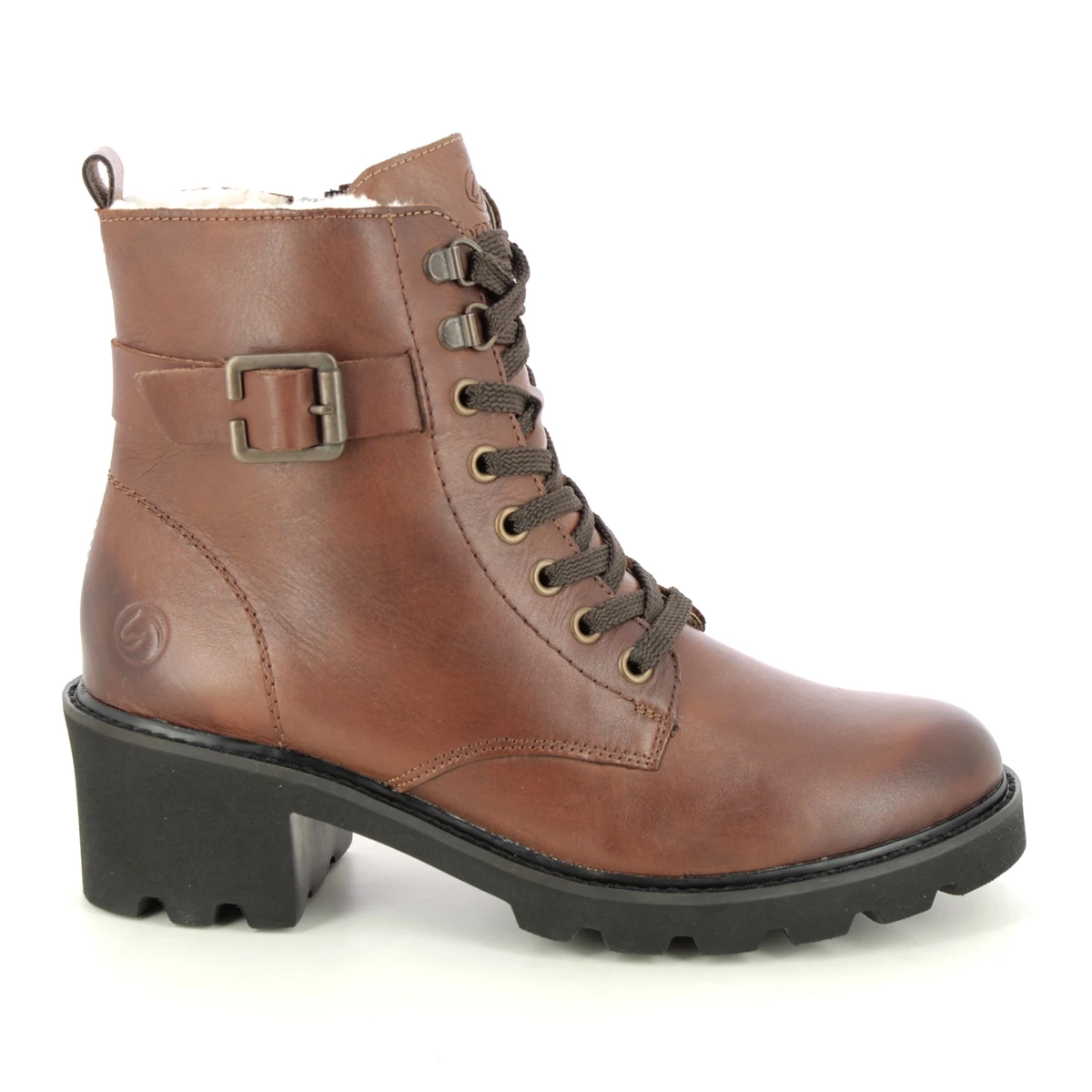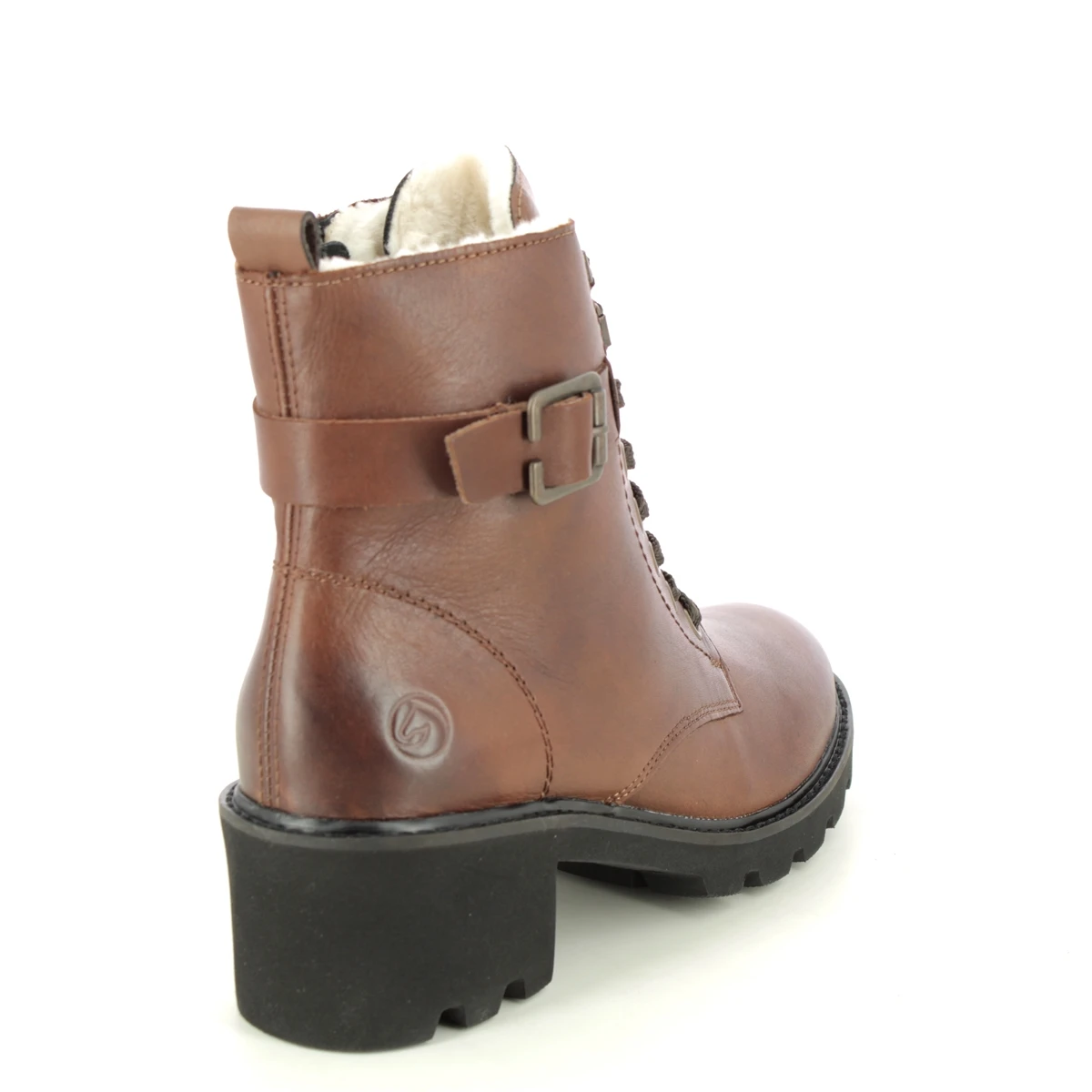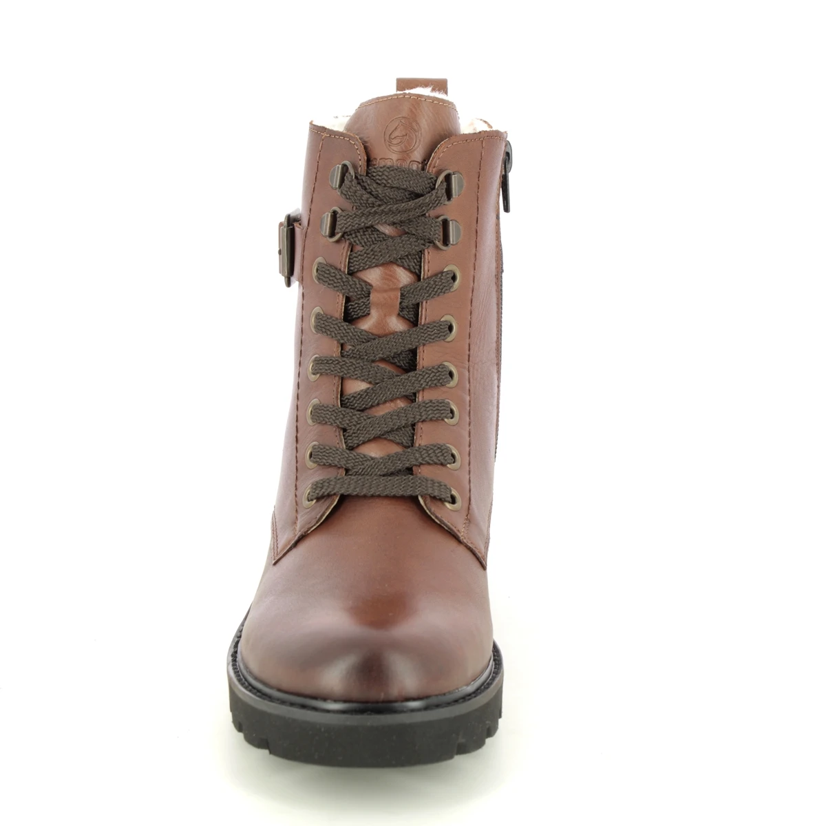 Remonte D0A74-22 Bodola women’s tan lace up boots are bang on trend for cosy chalet vibes. These women’s chunky heeled boots have a smooth leather upper with a white faux fur lining. The chunky sole unit measures 55mm at the heel, offering extra height without compromising on comfort.