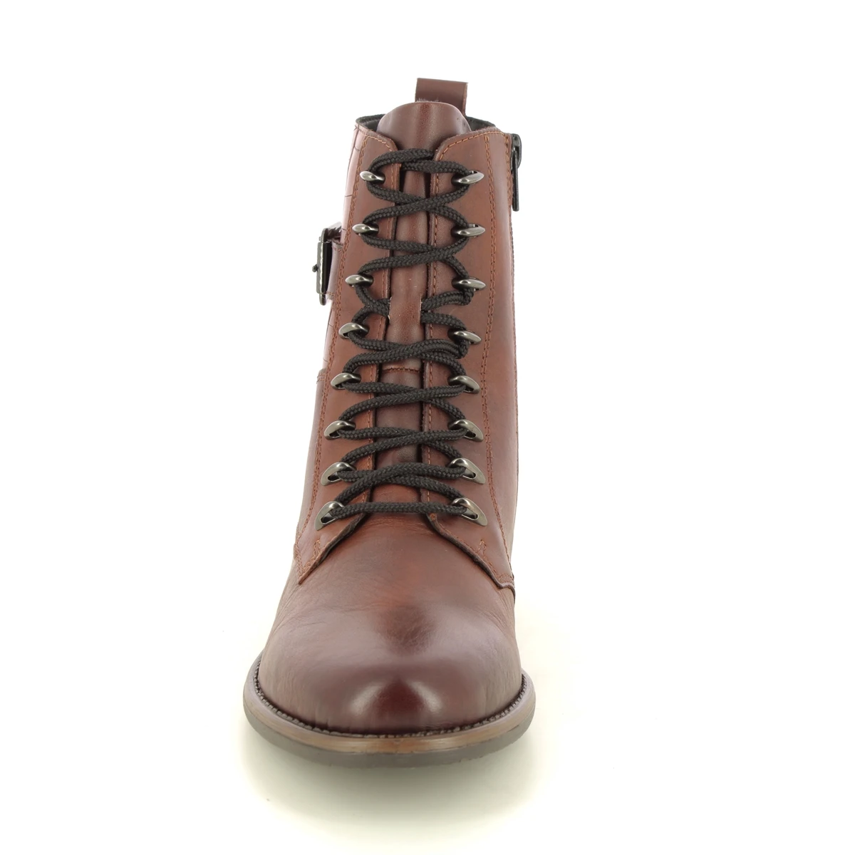 Remonte Peechlace women’s brown lacing boots are stylish and versatile. These women’s brown ankle boots have a lace up front with leather upper and a croc texture on the side.