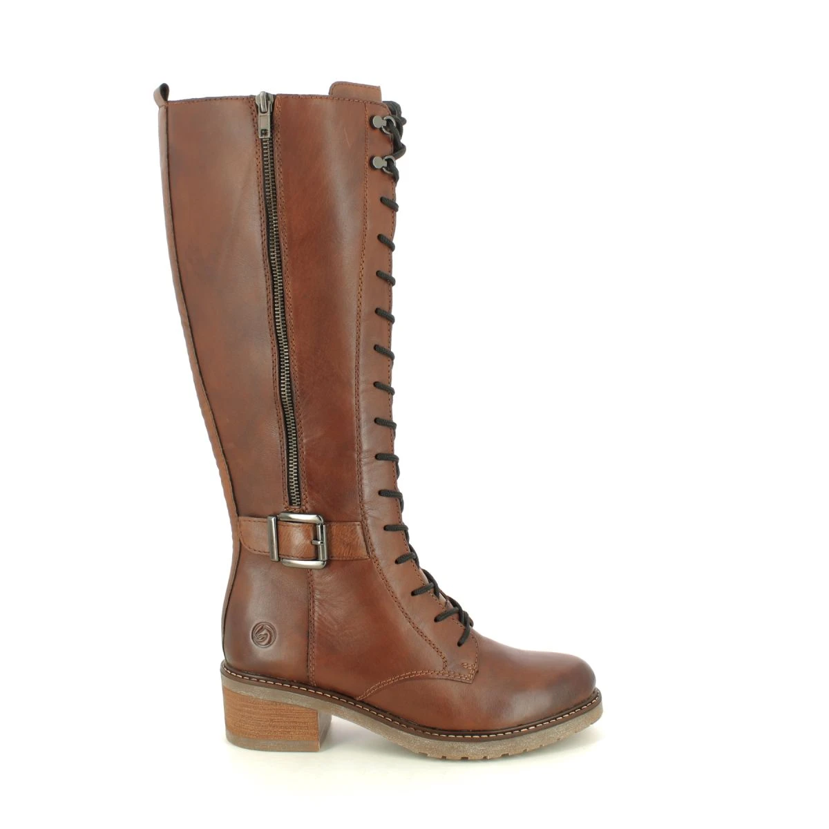 The Remonte Menarem Lace women’s brown knee high boots are ideal for cold weather. These women’s brown long boots have a lace up front with side zips and a block heel measuring 40mm.