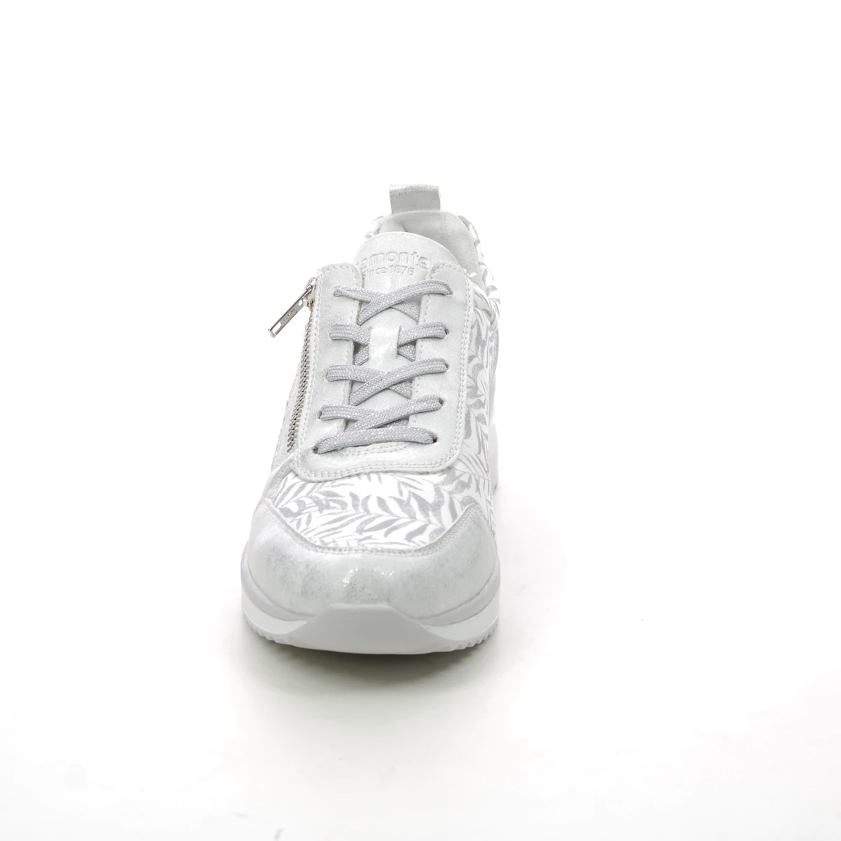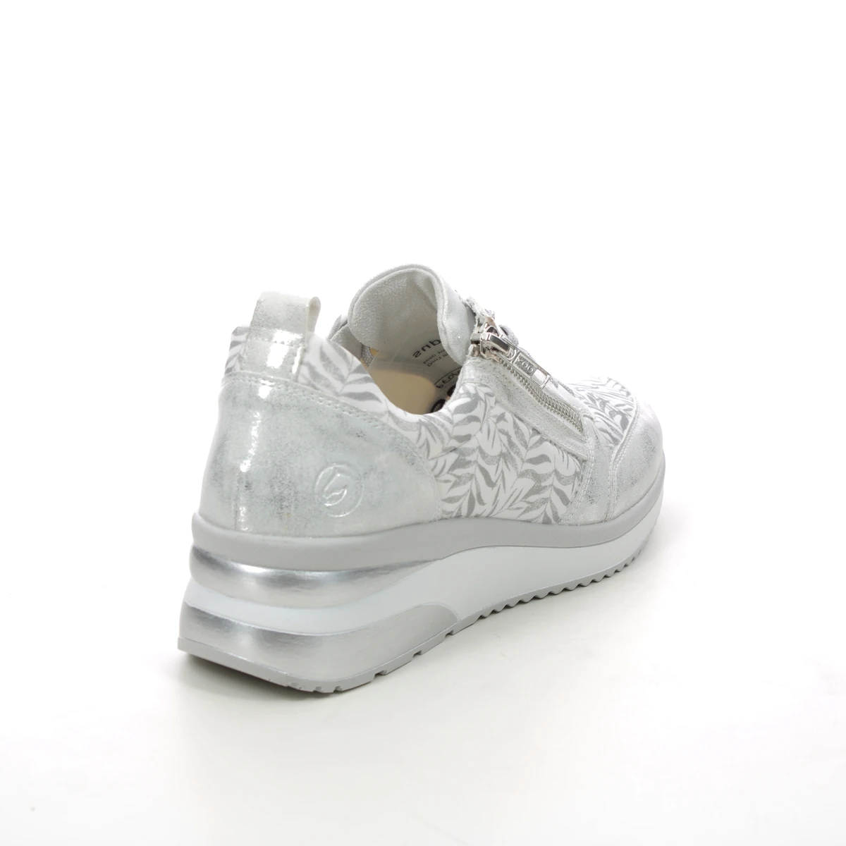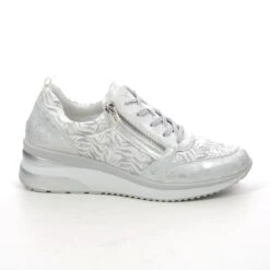 The Remonte Rea Zip Wedge women’s white wedge trainers are comfy and contemporary. These women’s silver sneakers have a leaf print upper with side zip and lace fastening. The wedge heel measures 5cm for extra height without compromising on comfort.