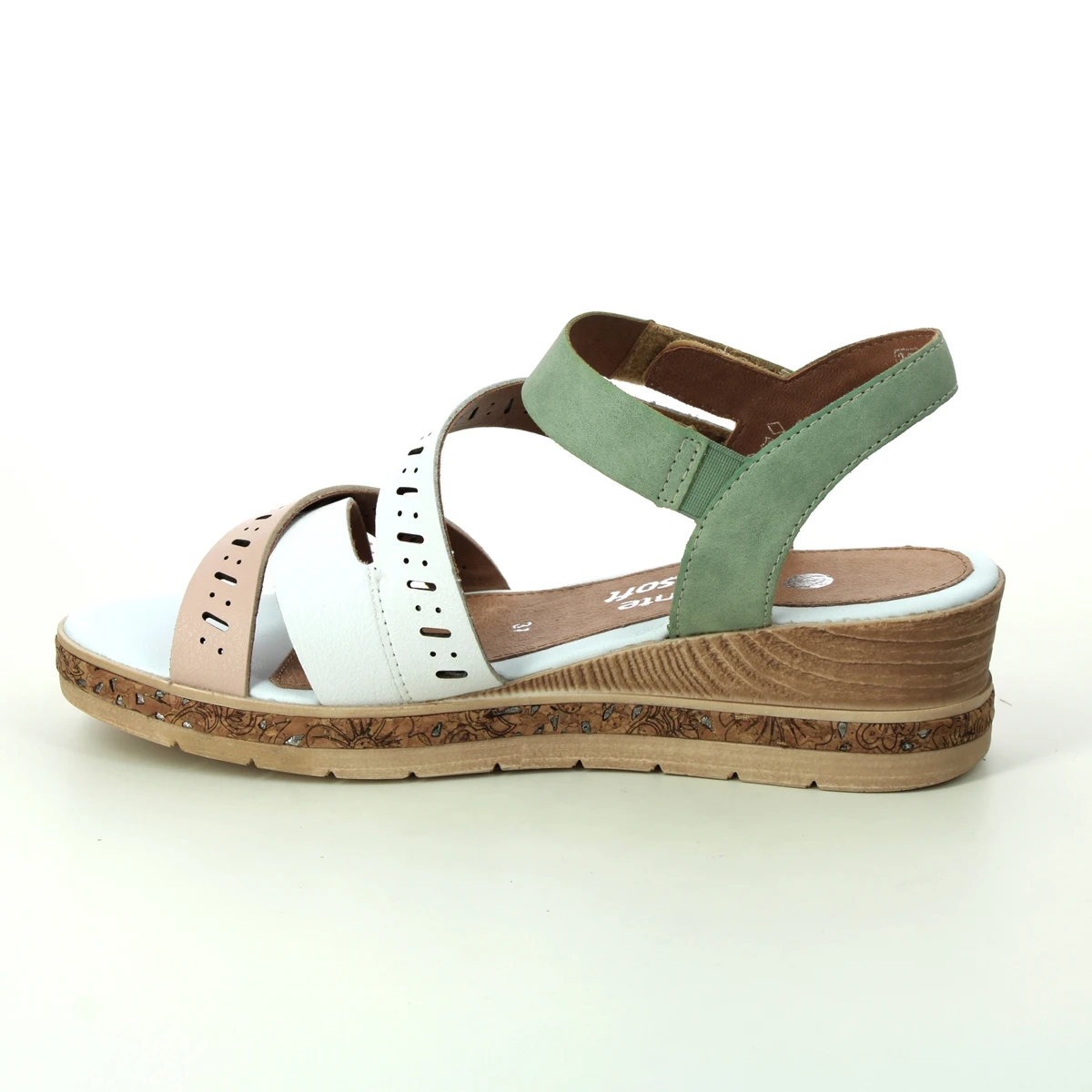 The Remonte Boudash women’s white, mint and pink wedge sandals are neutral. These women’s wedges have a leather upper in this season’s colours of mint green, white and pastel pink. Velcro straps offer an adjustable fit whilst the padded footbed ensures comfort underfoot.