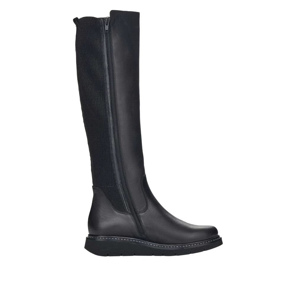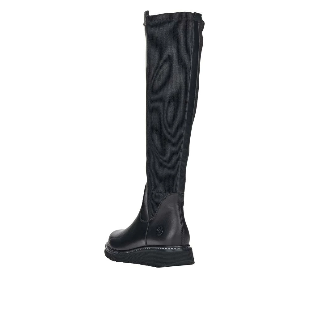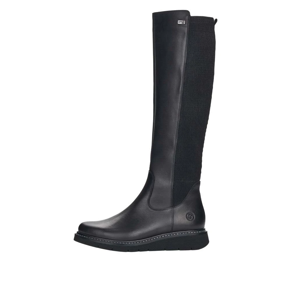 Remonte Astrostret Tex women’s black knee high boots are a versatile addition to our boots collection. These women’s long boots have a leather upper with a stretchy back panel for comfort. The water resistant Tex membrane adds a practical element, whilst the low wedge heel maintains the contemporary appearance.