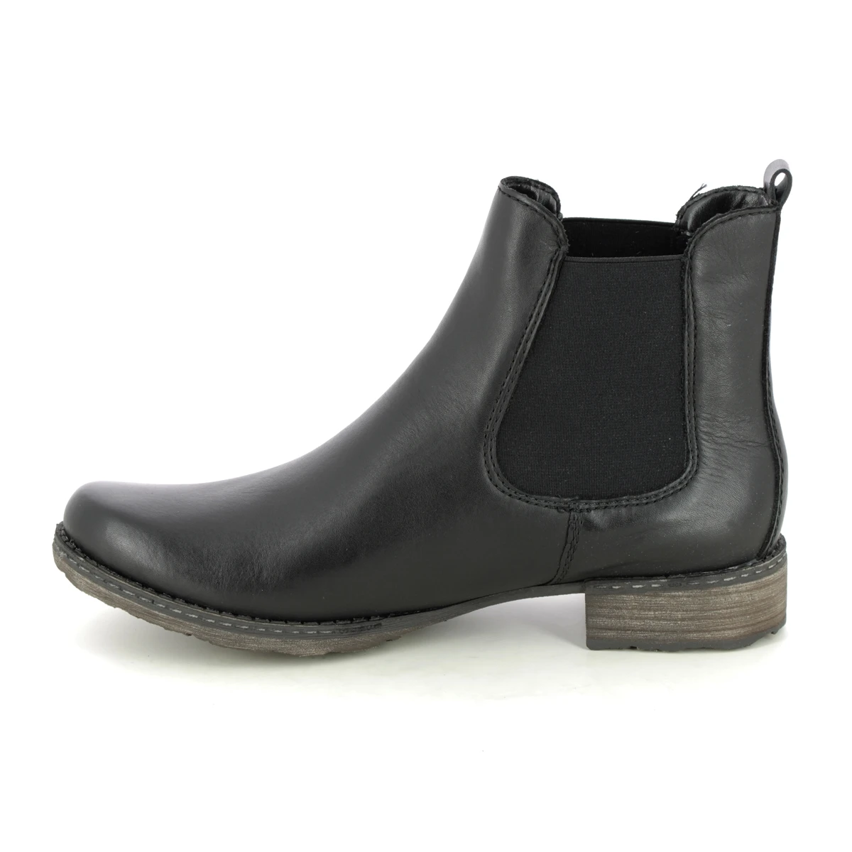 The Remonte D4375-00 Peesicha women’s black leather Chelsea boots are a smarter choice of colour than the typical tan. These women’s leather ankle boots are breathable and flexible whilst the stretchy side panels offer an easy slip on fit and stretchy comfort.