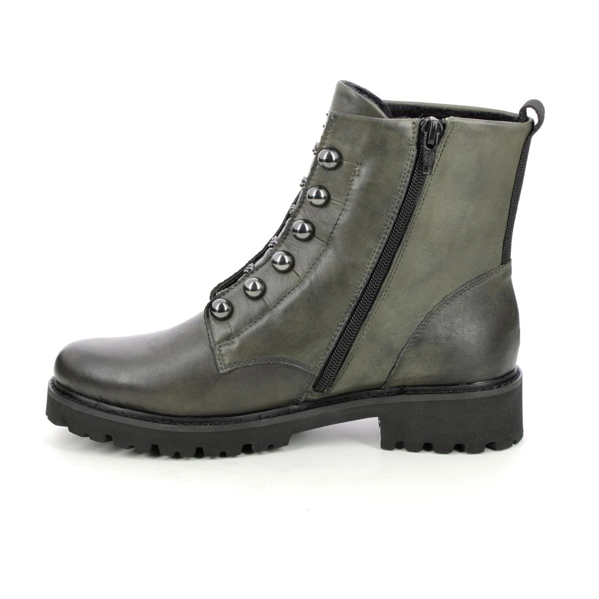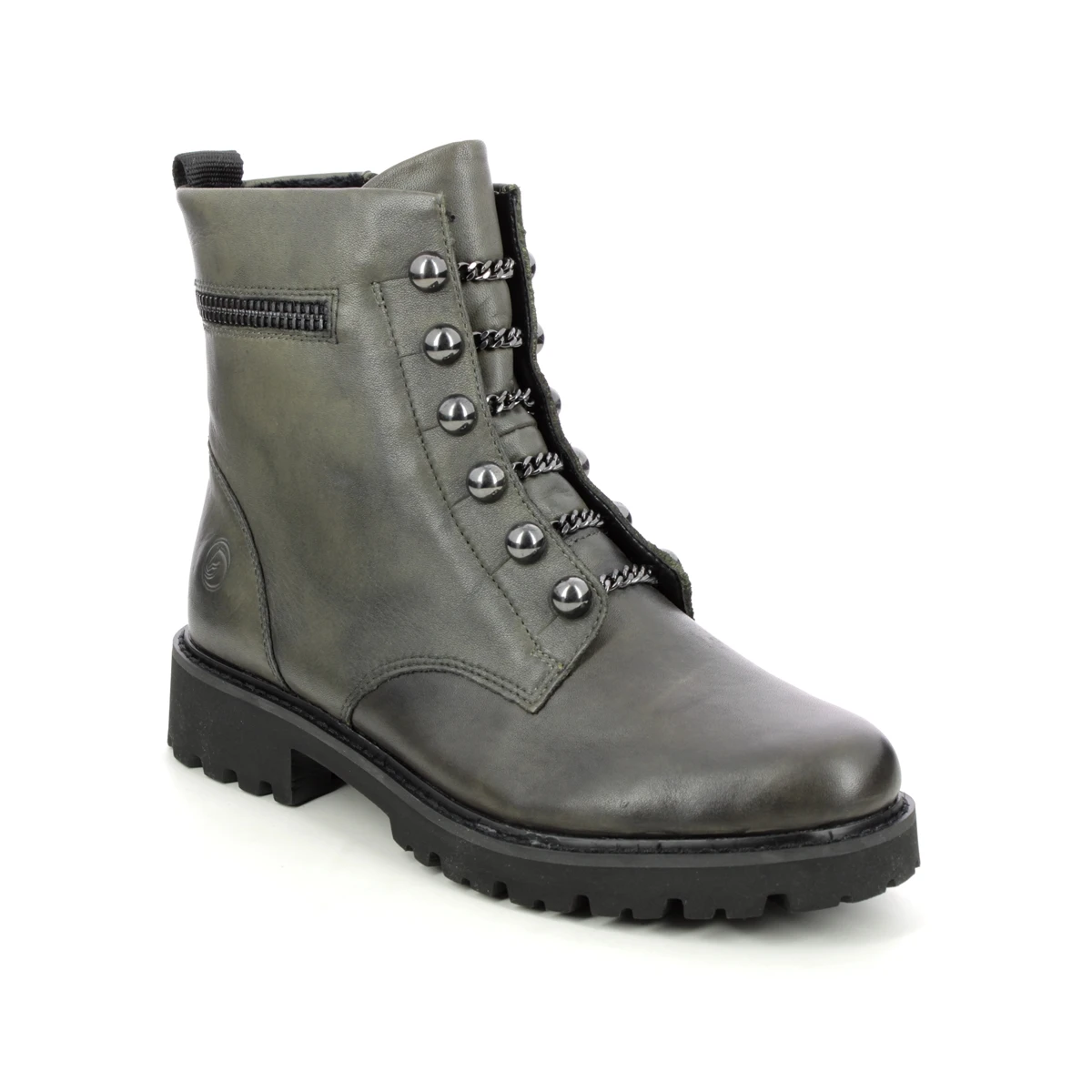 The Remonte D8670-52 womens olive biker boots are stylish and comfy. These womens olive leather ankle boots in green grey have a cleated outsole for improved grip whilst the removable insole offers additional width if required.