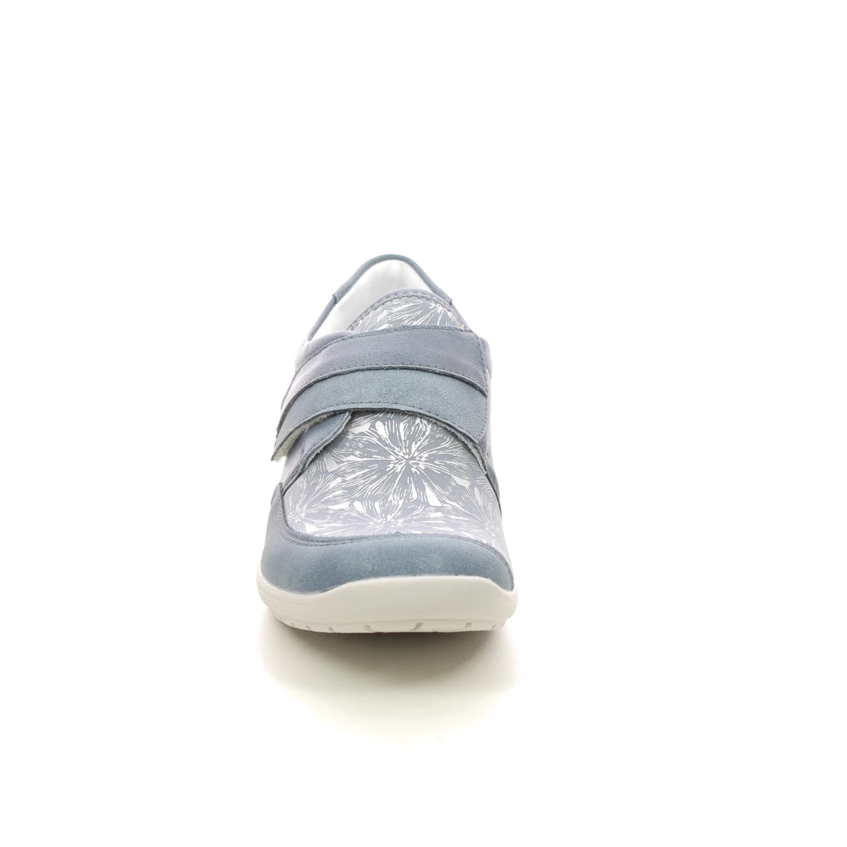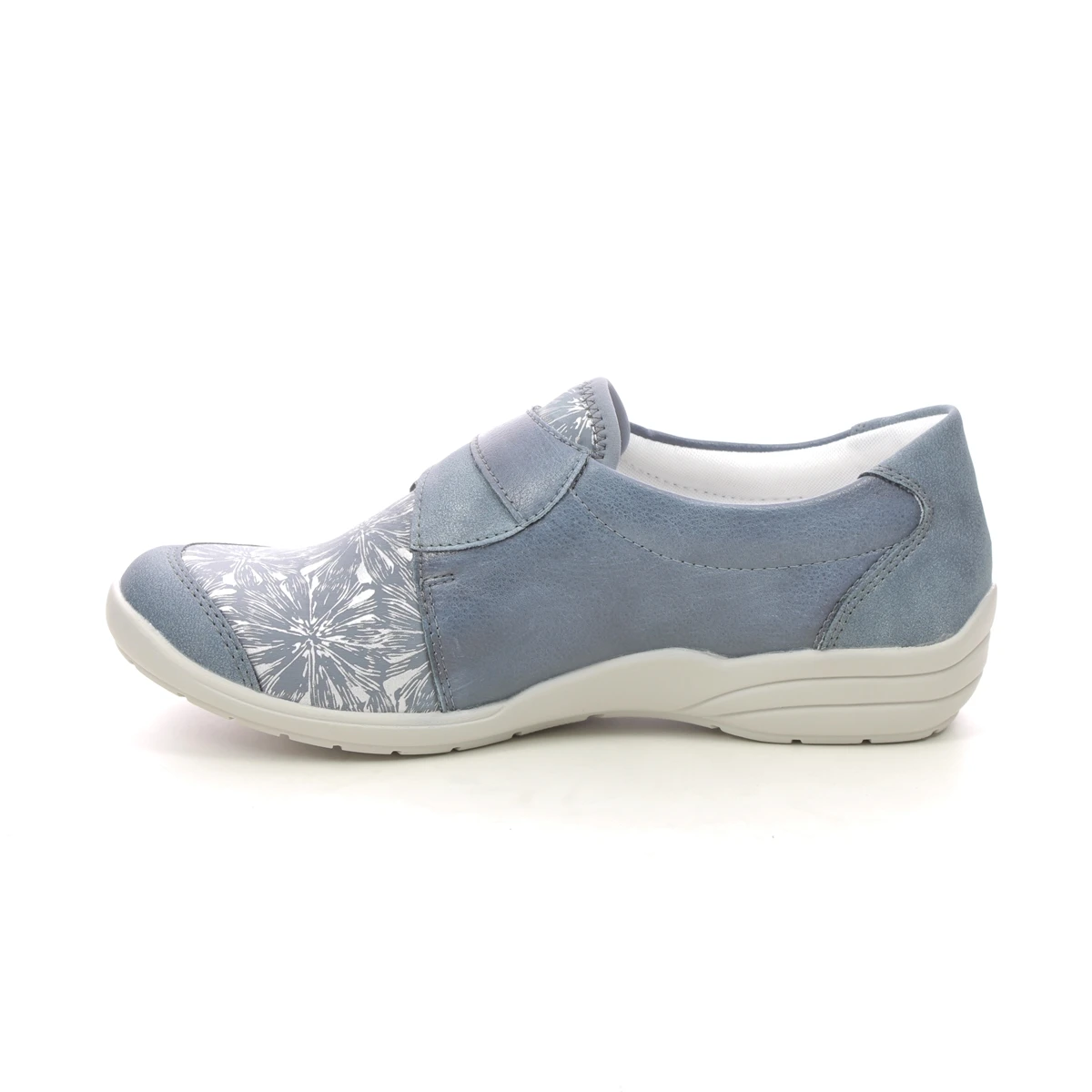 Remonte Bertavel women’s denim blue comfort slip on shoes are lightweight and flexible. These women’s wide fit Velcro shoes have a leather and man-made upper, with a shimmering floral pattern on the toe. The hook and loop strap ensures an easy fastening whilst the padded lining and removable insole offer further comfort.