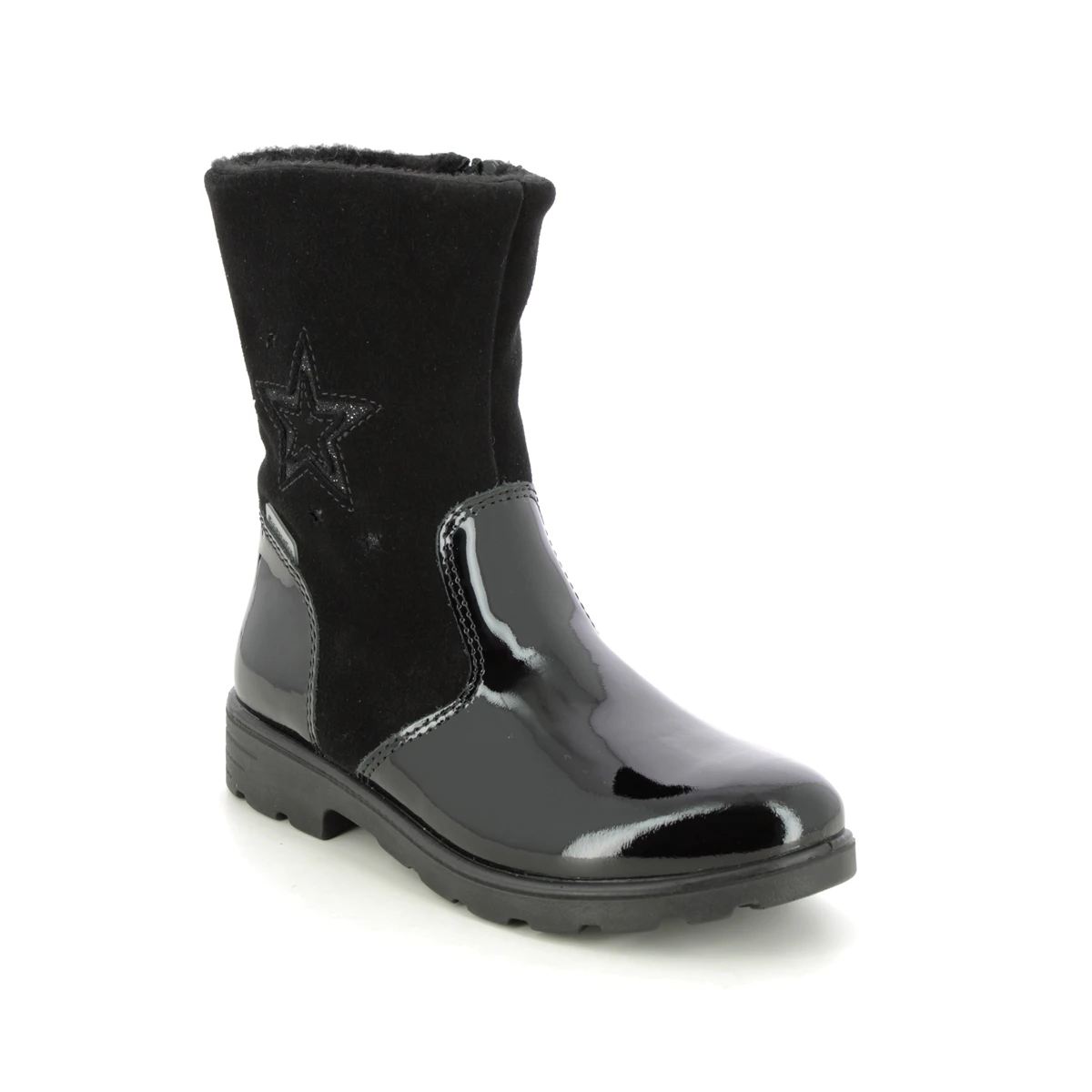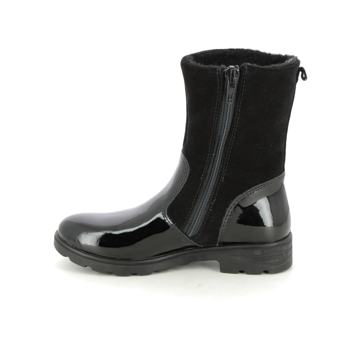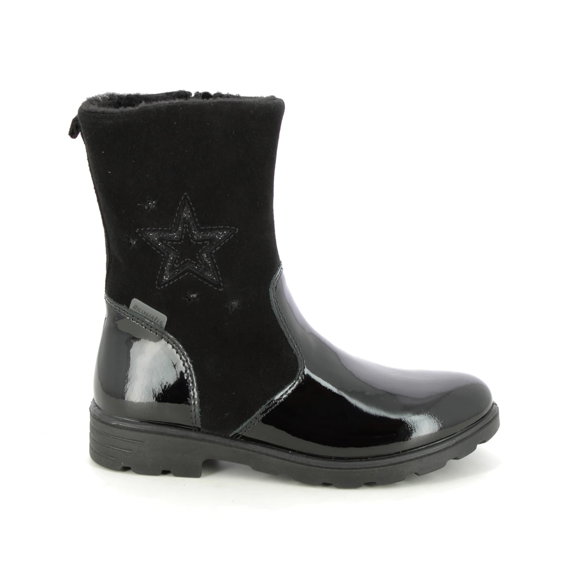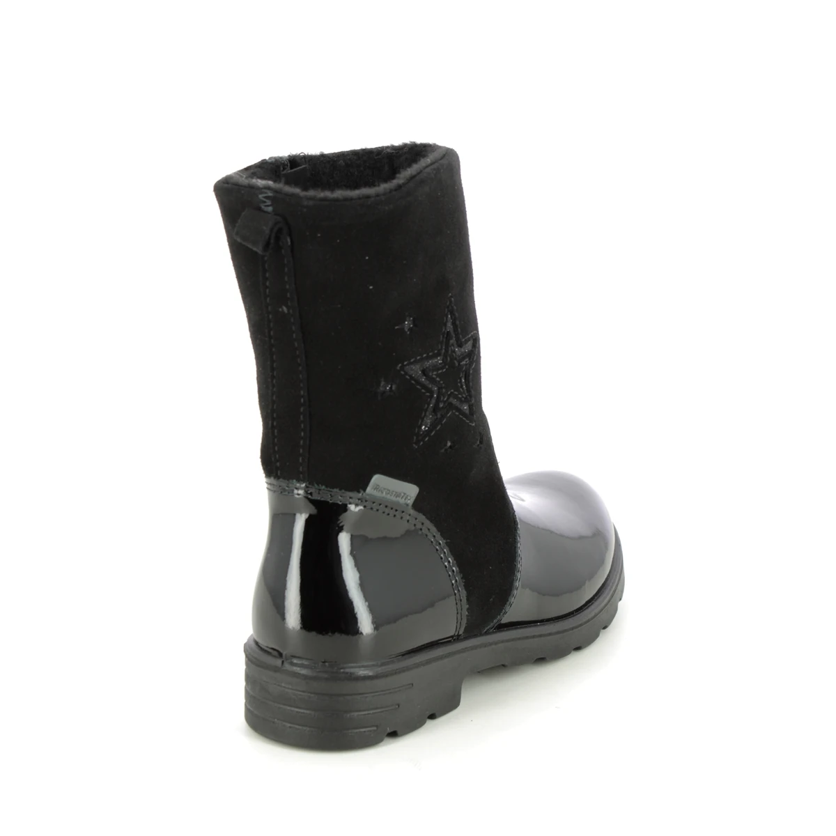 Ricosta bring us 7228100-092 STEPHANIE TEX. These stunning girls boots in black suede and patent are the perfect addition to your childs winter wardrobe. Ricosta have used a RICOSTA TEX membrane for a waterproof finish. The addition of a zip to the inside of the boots make them easy to use while the chunky sole unit adds a practical touch.