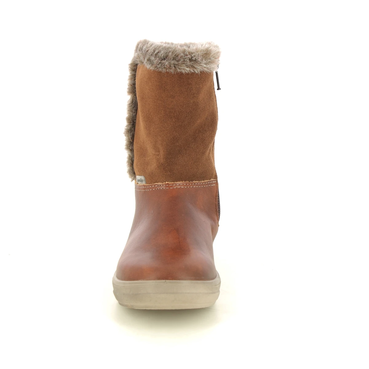 Ricosta Usky Sympatex infant girls boots in tan are cute and comfy. These toddler girls boots have a smooth leather upper, with soft suede panel and a cosy faux fur lining and trim. There is a handy zip at the side for easy fastening too, whilst the waterproof membrane ensures feet are kept dry and cosy at all times.