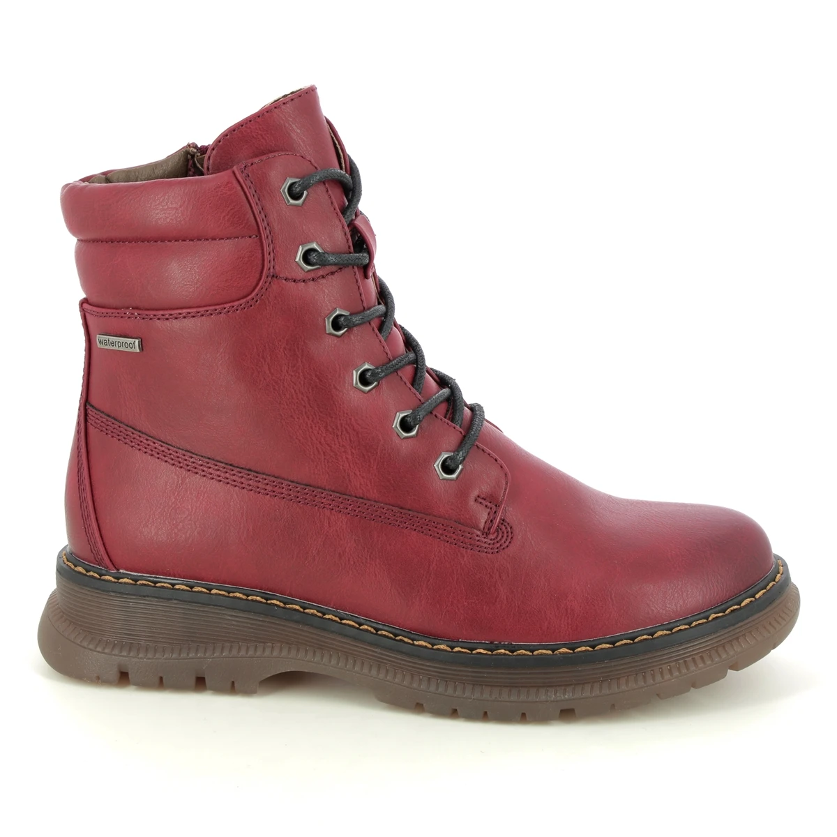 The Westland Peyton 01 Tex women’s dark red biker boots are waterproof and colourful. These women’s dark red ankle boots have a lace up front with an easy side zip, are made from Vegan-friendly materials and have a waterproof Tex membrane.