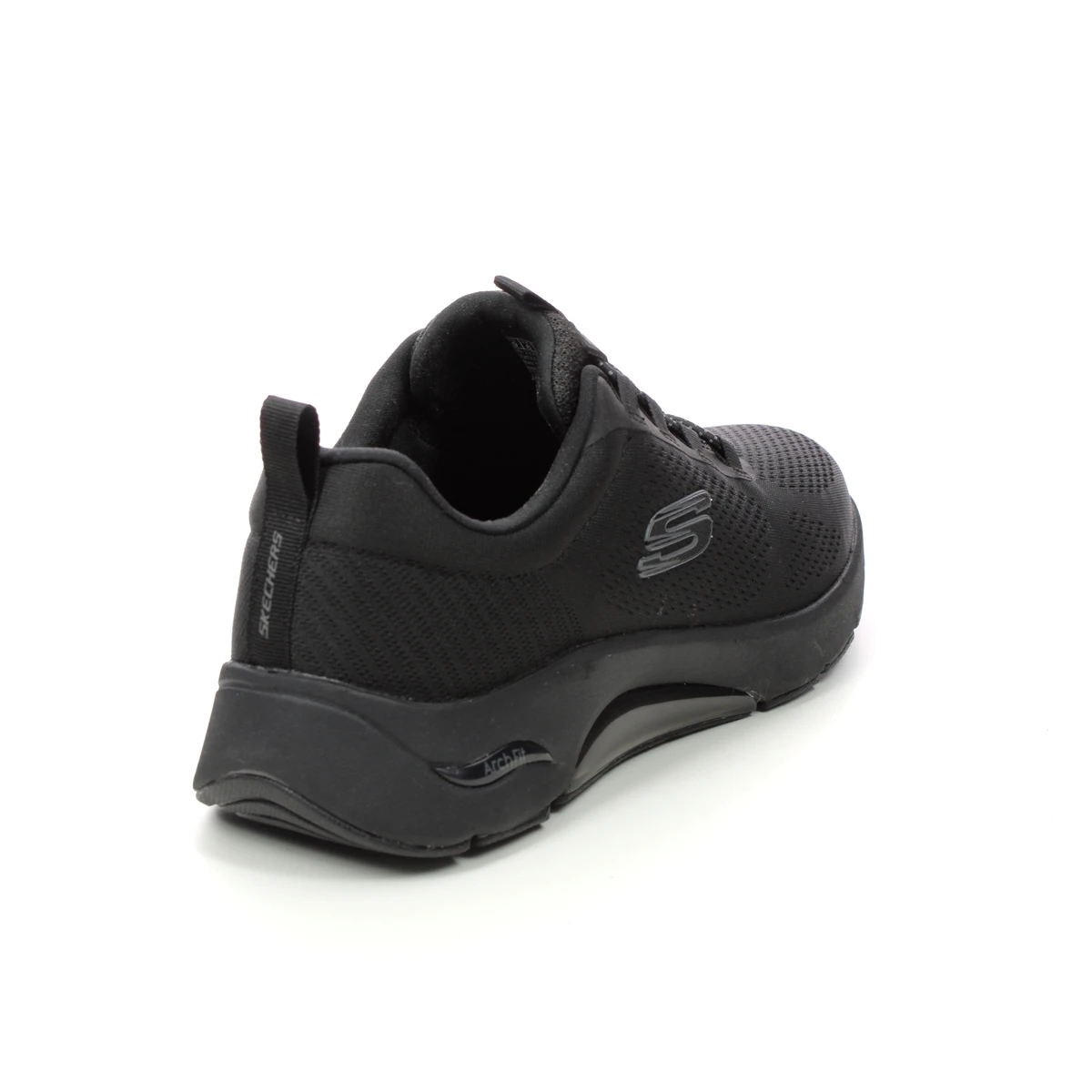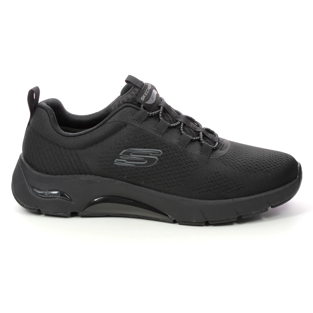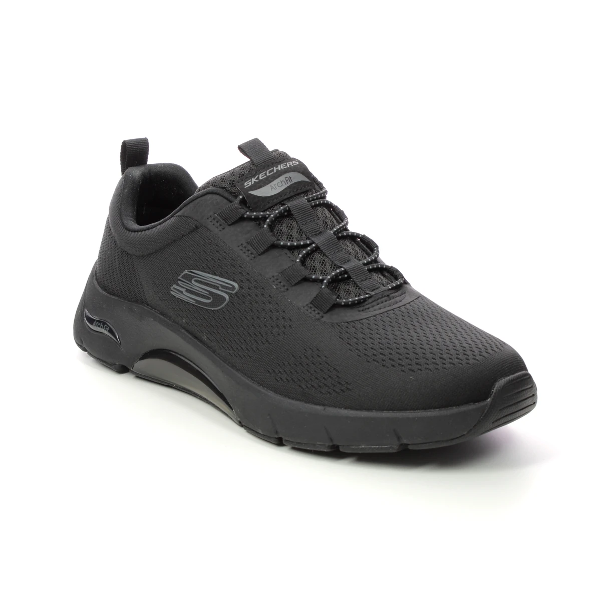 The Skechers Arch Fit Air Mens black trainers are supportive and versatile. These men’s all black trainers have a breathable textile upper with built-in arch support in the Air Cooled Memory foam footbed. The bungee lace fastening offers an easy slip on fit, and the machine washable design makes these men’s Vegan trainers easy to clean.