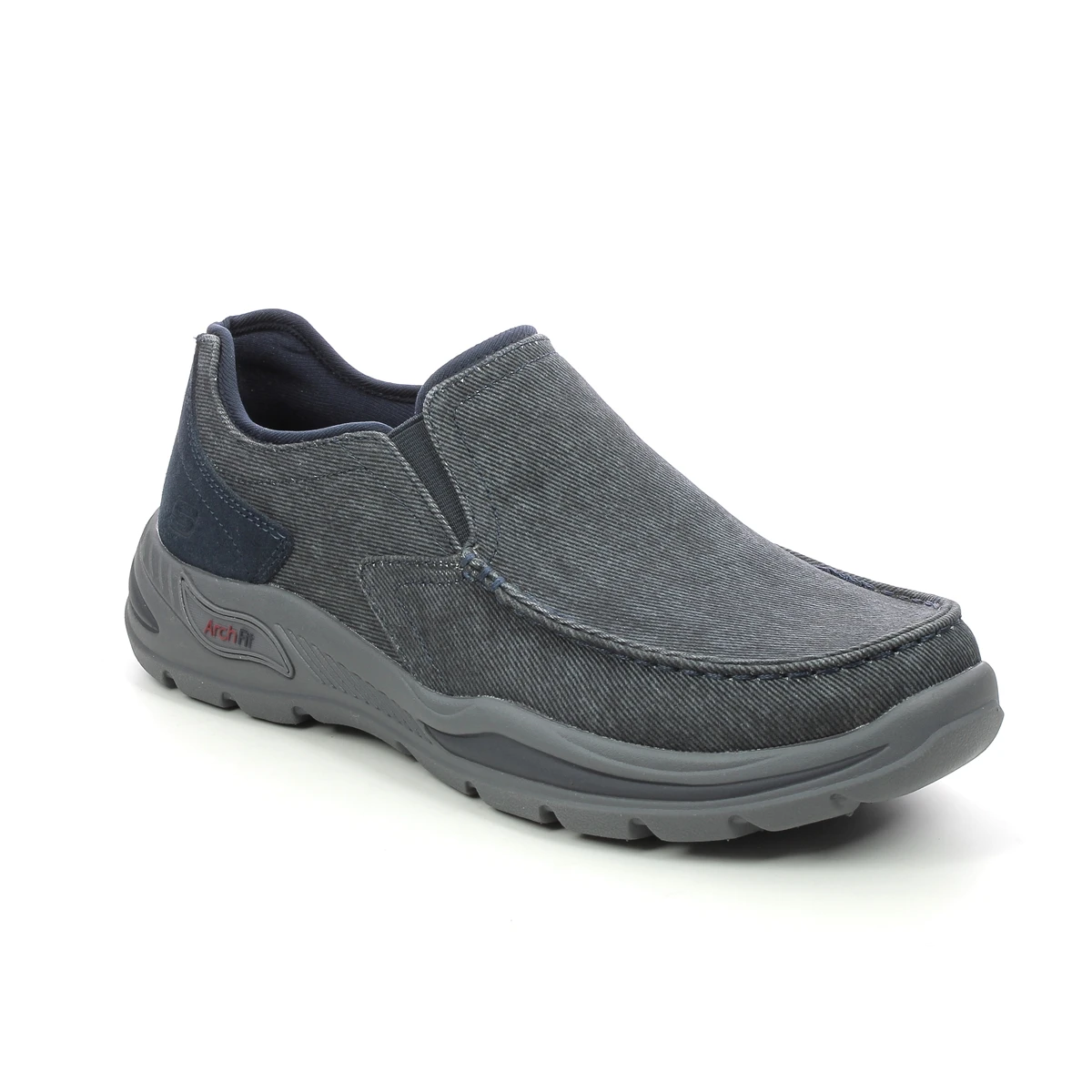 Skechers 204178 ARCH FIT MOTLEY ROLENS mens slip on shoes offer an alternative styling to the normally sporty Skechers. The textured canvas upper has been decorated with moccasin style stitching to offer a more smart-casual style. Featuring soft smooth linings and Arch Fit Memory Foam footbeds for maximum comfort and arch support. Dual elasticated side panels allow for a easy slip on-off wear while hugging the foot during wear. Flexible outer sole with added rubber layer provides additional traction. Pair these slip on shoes with anything from jeans to chinos to work trousers for a smart yet casual look