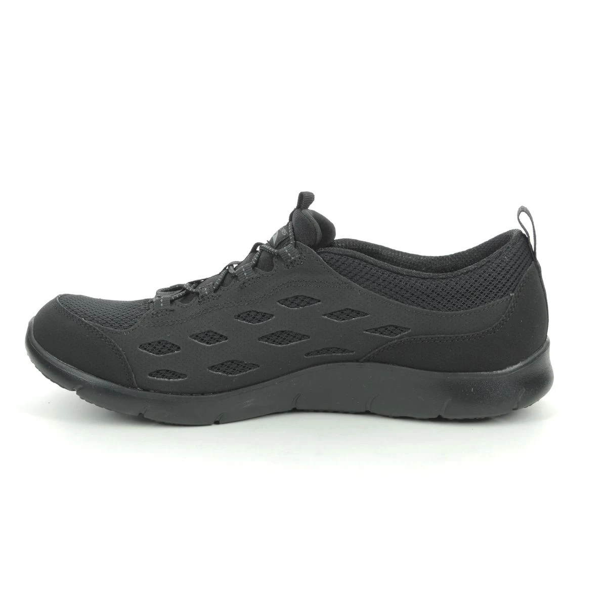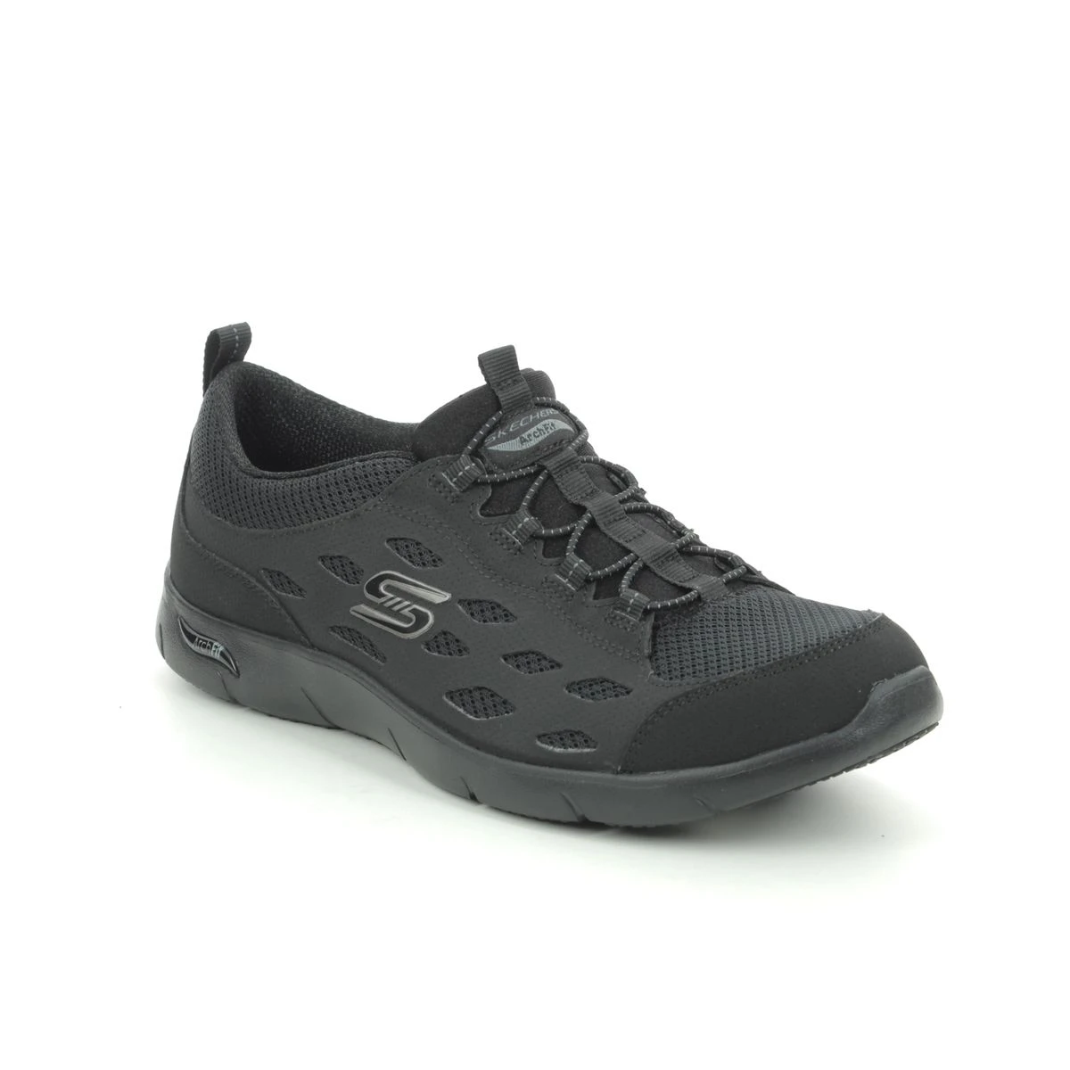 The Skechers 104163 Arch Fit Refine womens slip-on trainers are sporty and comfy. These womens black Skechers have a mesh fabric upper with high-quality man-made overlays on the side toe and heels for added durability. The bungee lace up front offers an easy slip on fit and the cushioned tongue and collar ensures your comfort from the first moment. The Skechers Arch Fit design is podiatrist-approved and provides support and relief where your feet need it the most.