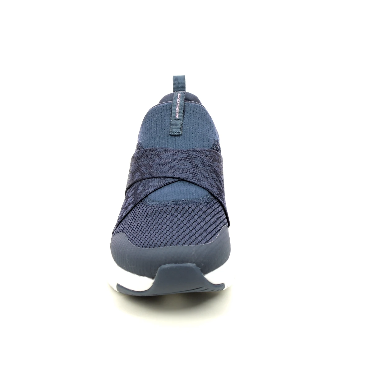 Skechers 149717 Arch Fit Slip On X Strap womens navy slip on trainers have an air cooled memory foam footbed with an elastic cross strap over the upper