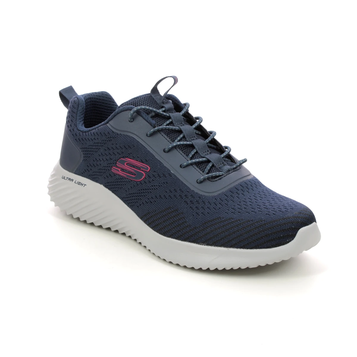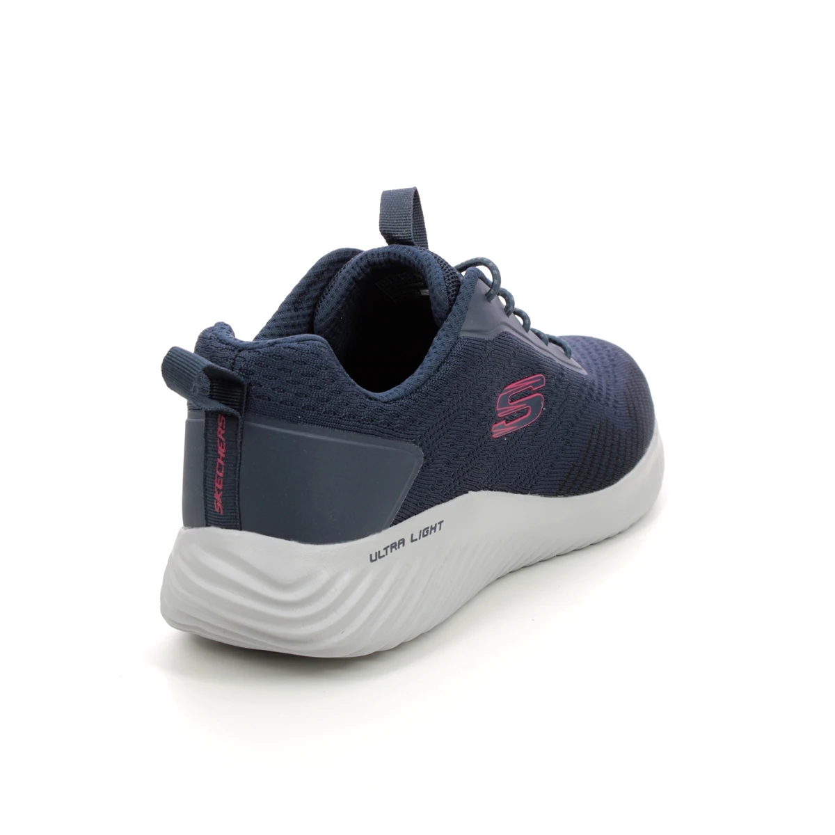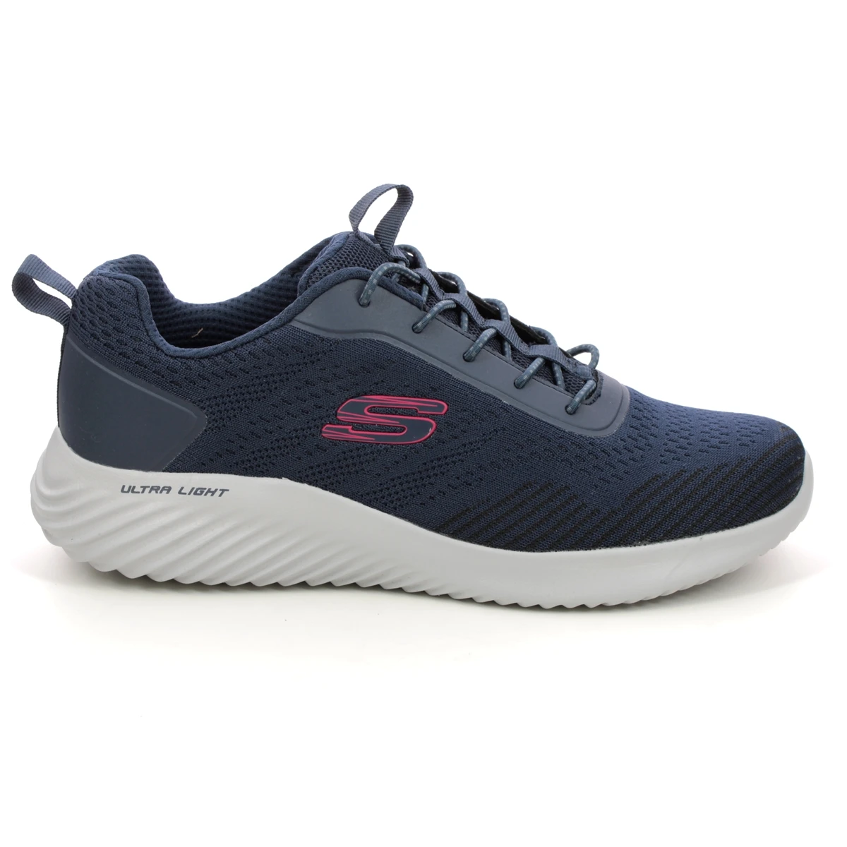 Skechers 232377 Bounder mens navy trainers are made with a memory foam footbed and vegan materials.