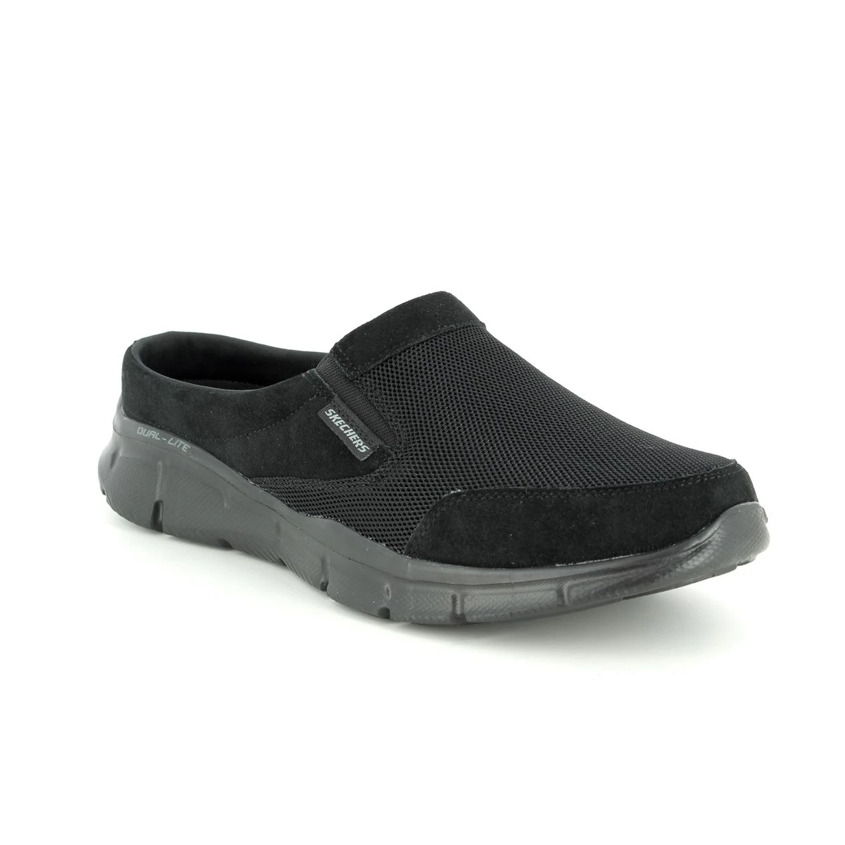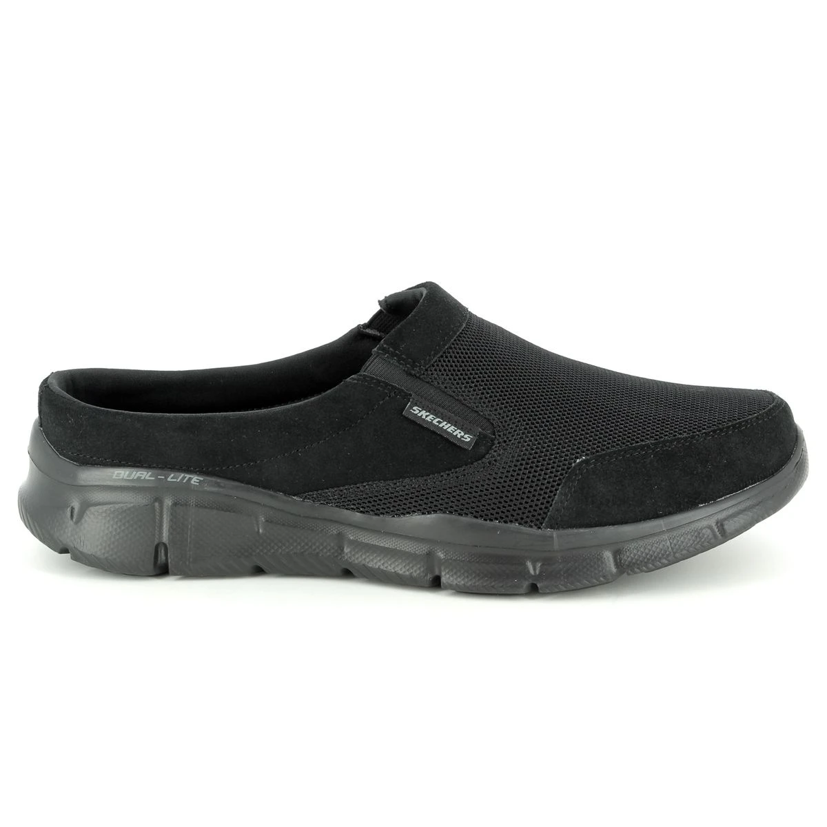 Skechers Coast to Coast 51519 Skechers mules are an easy-going yet sporty style with a suede and fabric upper. The mens black mesh slip-on trainers have twin elastic panels for easy access and comfort and the backless mens trainers include a memory foam cushioned footbed for the ultimate comfort. A padded collar and soft fabric shoe lining is super comfy and the FlexSole lightweight midsole is shock absorbent for your comfort