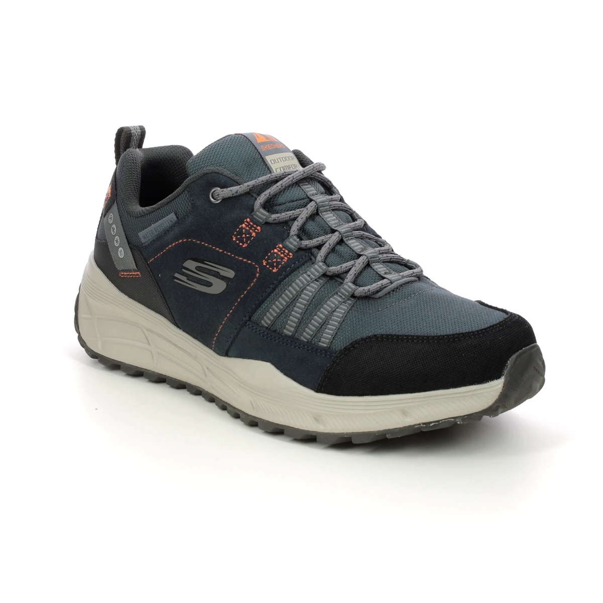 Skechers Equalize X Wide men’s navy trainers are spacious. These men’s extra wide trainers have a water resistant suede leather upper with lace up front and a rubber outsole.