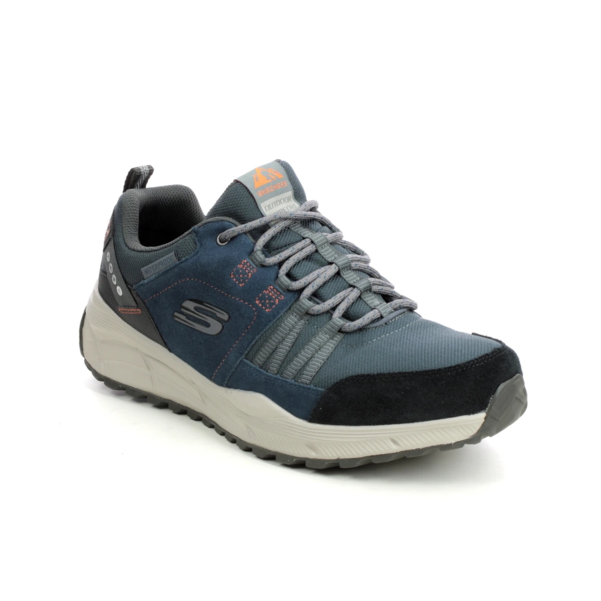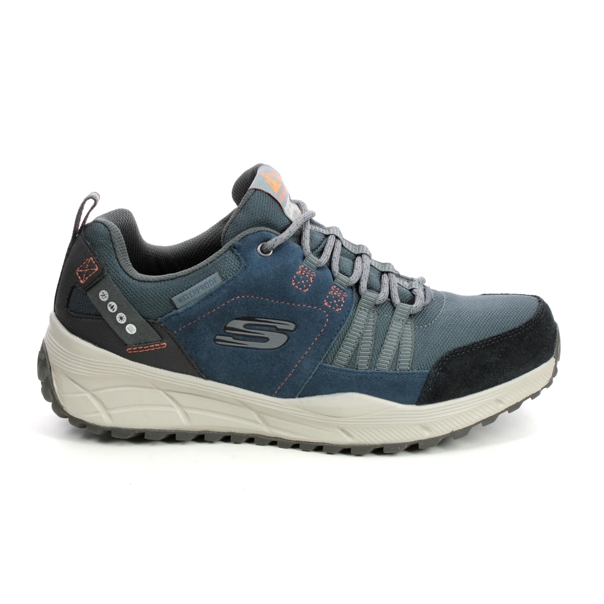 Skechers 237179 Equalizer Tex men’s navy walking shoes are waterproof and wider fit.