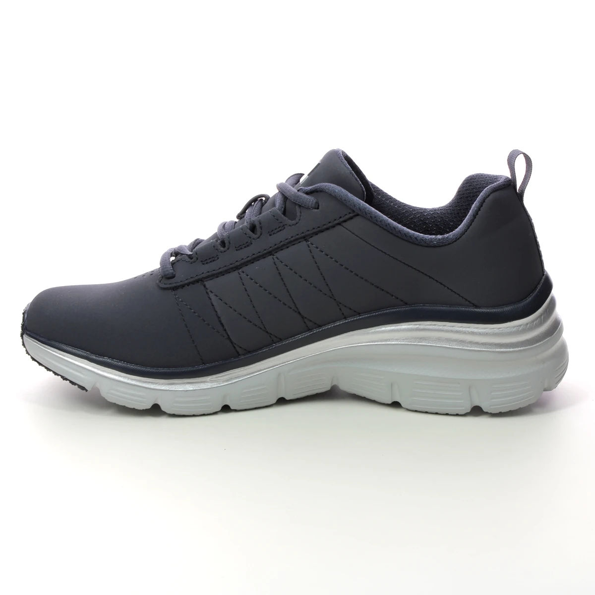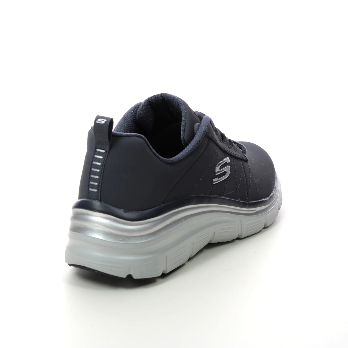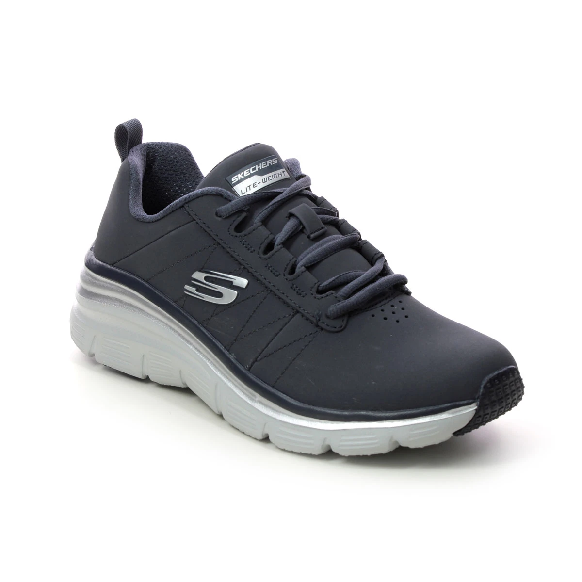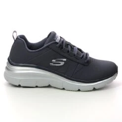 Skechers Fashion Fit Wedge women’s navy wedge trainers are sporty and versatile. These women’s navy wedge trainers have a smooth upper made from high quality man made materials with subtle stitching accents on the side. The silver trim around the sole adds a touch of sparkle whilst the contrasting white wedge sole maintains the sporty look. These Skechers navy trainers measure 50mm at the heel for extra height without compromising on comfort, and the padded Memory foam footbed offers superb comfort from the first moment.