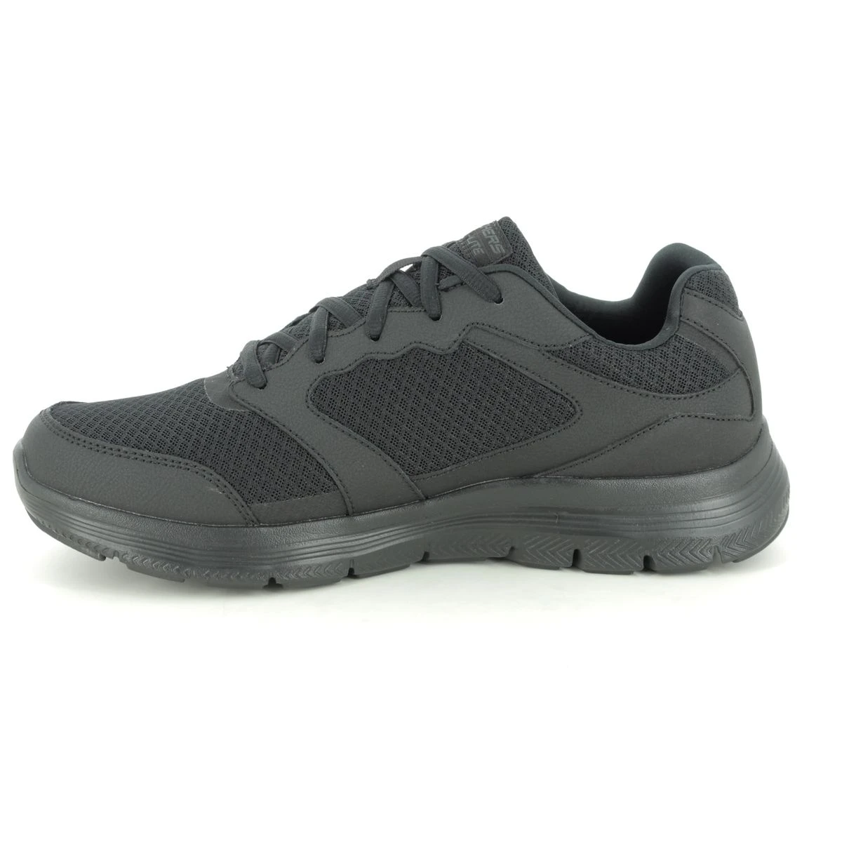 The Skechers 232225 Flex Advantage 4.0 mens black Skechers have a mesh fabric upper with overlay panels for improved durability. The lace up front provides an adjsutable and secure fastening whilst the padded collar and tongue offers a snug and comfortable fit. The lightweight outsole in black is flexible and maintains the sporty look whilst the Air Cooled memory foam footbed offers immediate comfort from the first moment.