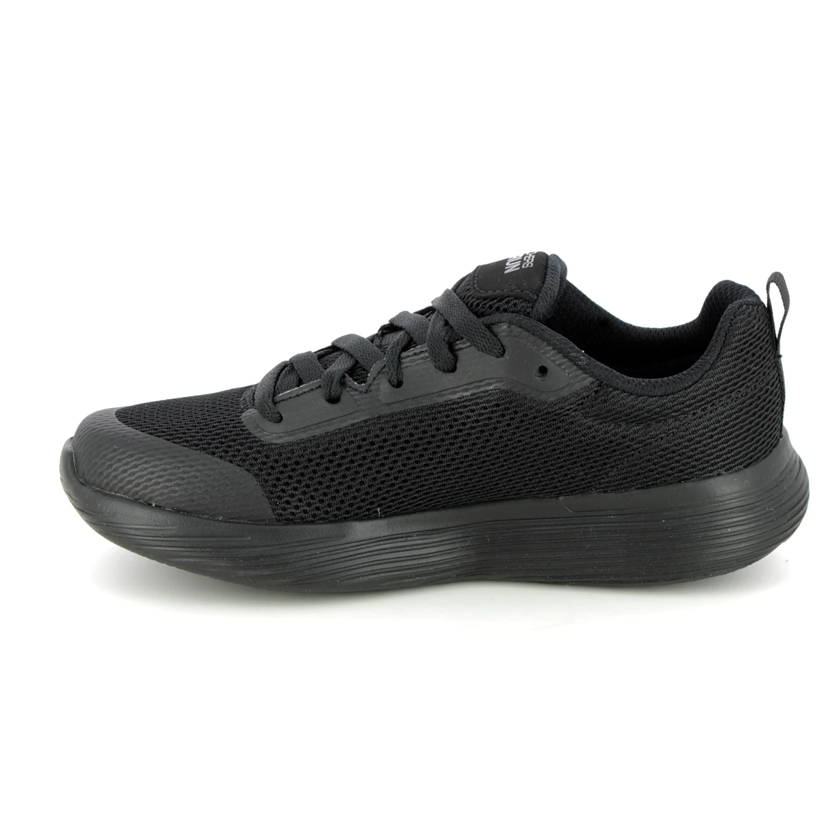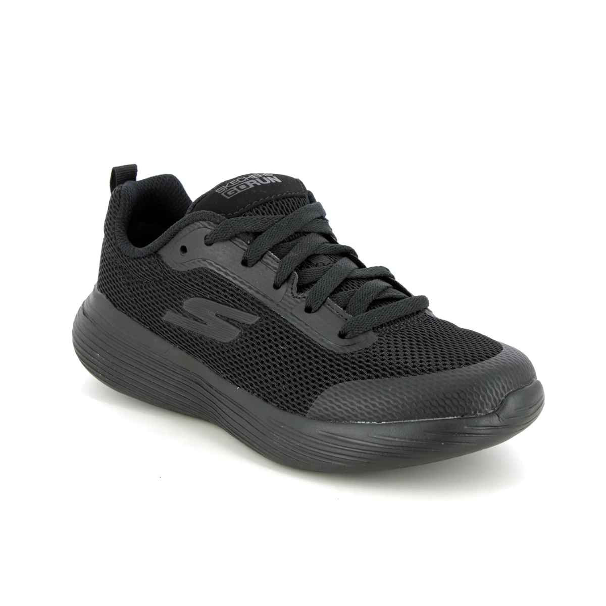 Skechers 405100L Go Run 400 Lace boys black trainers have a comfy air cooled Goga mat footbed and are fully lacing.