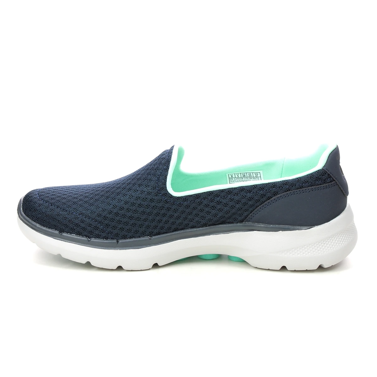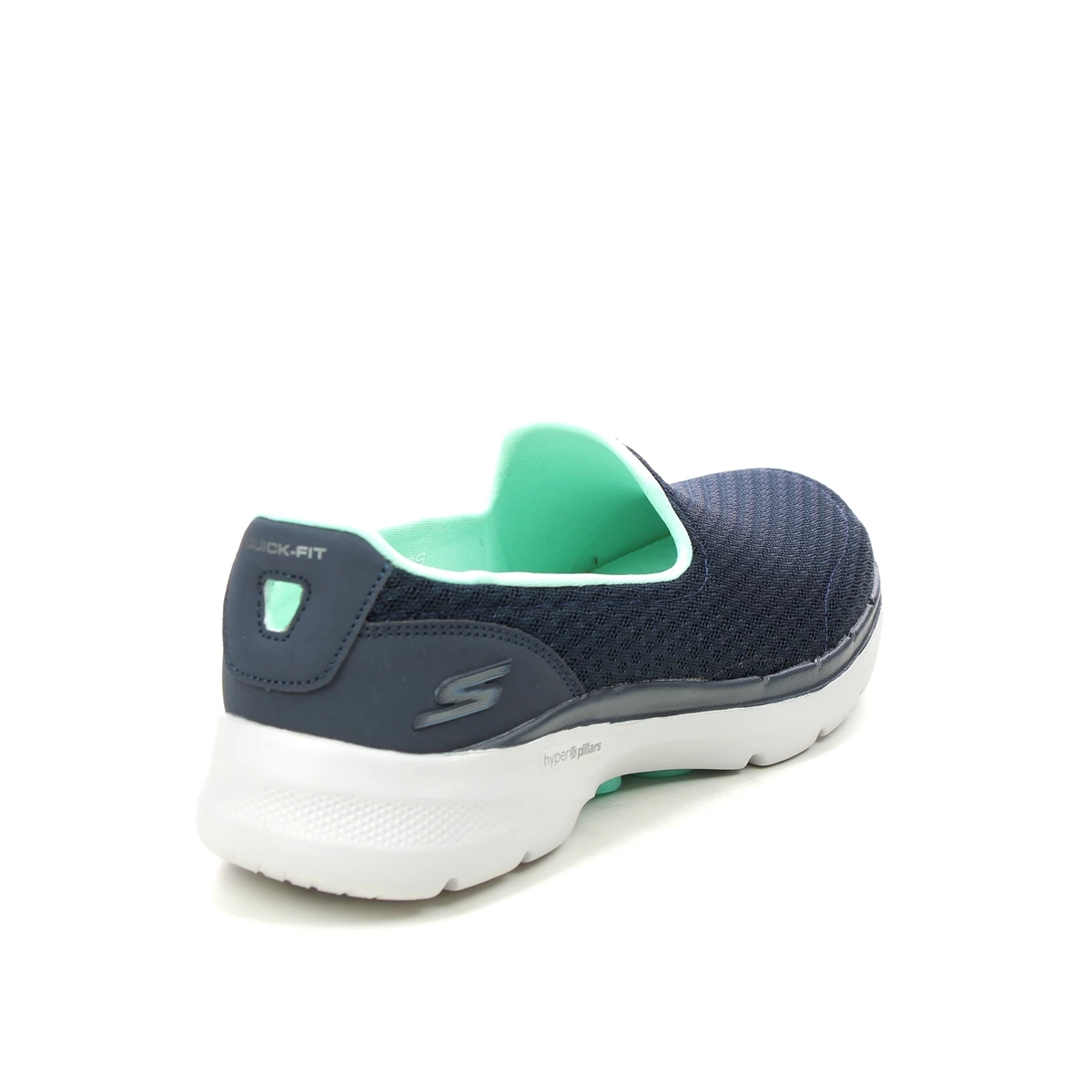 Skechers 124508 GO WALK 6 slip-on trainers are supportive and stylish. These slip on Skechers have a navy knitted mesh fabric upper with turquoise lining and white sole. The Skechers Go Walk 6 trainers feature an air cooled Goga mat footbed dual-density outsole and pillar technology offering a bounce with every step. There is a tab at the heel offering an easy slip-on fit whilst the padded collar ensures a snug fit. Lightweight and supportive the Go Walk 6 Skechers are a great option for versatile walking comfort