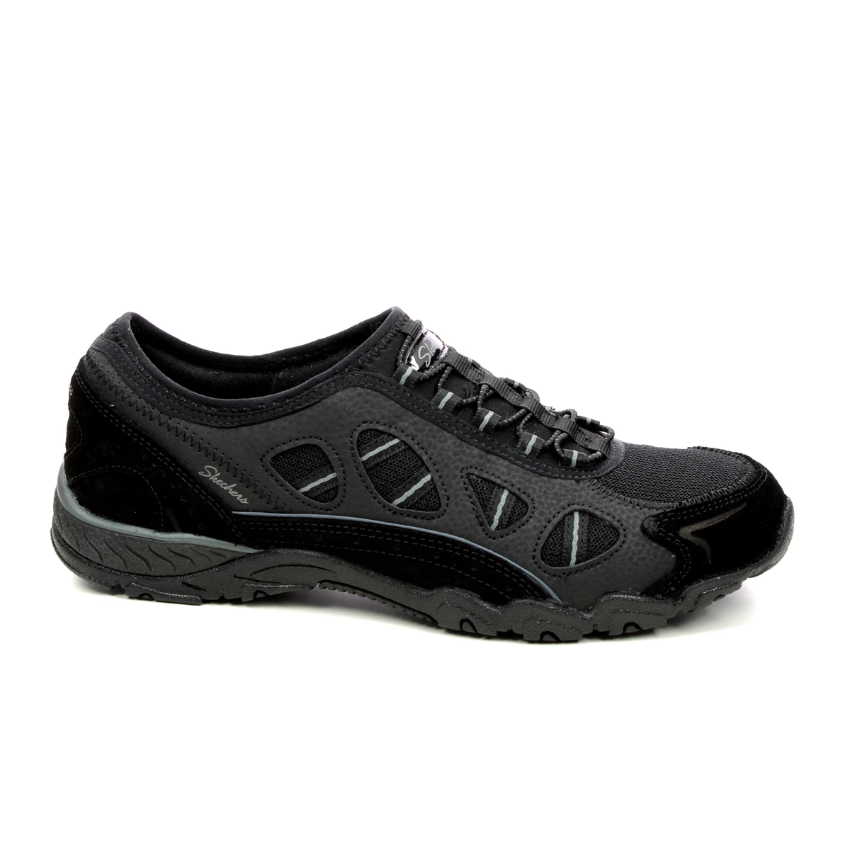 Skechers Hot Ticket 2 women’s black slip on shoes offer comfort and stability underfoot. These women’s slip on trainers have a black man-made upper with breathable mesh fabric panels. There are additional grooving details on the outsole for improved traction, whilst the padded memory foam footbed ensures comfort underfoot. Skechers have used their Relaxed Fit design to bring you a wide fitting comfort shoe.
